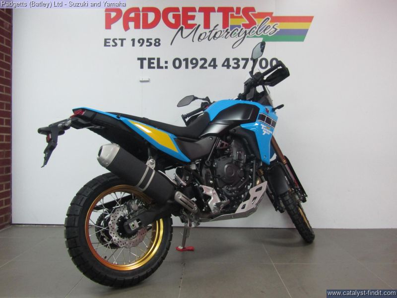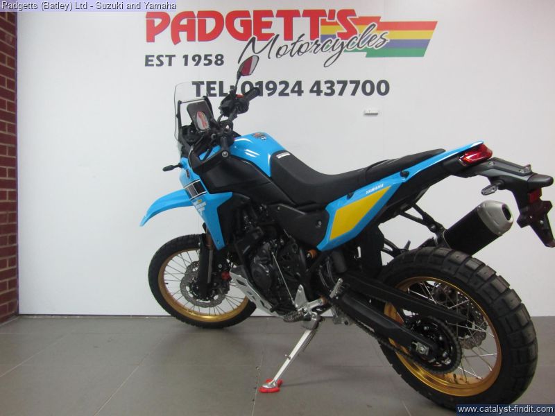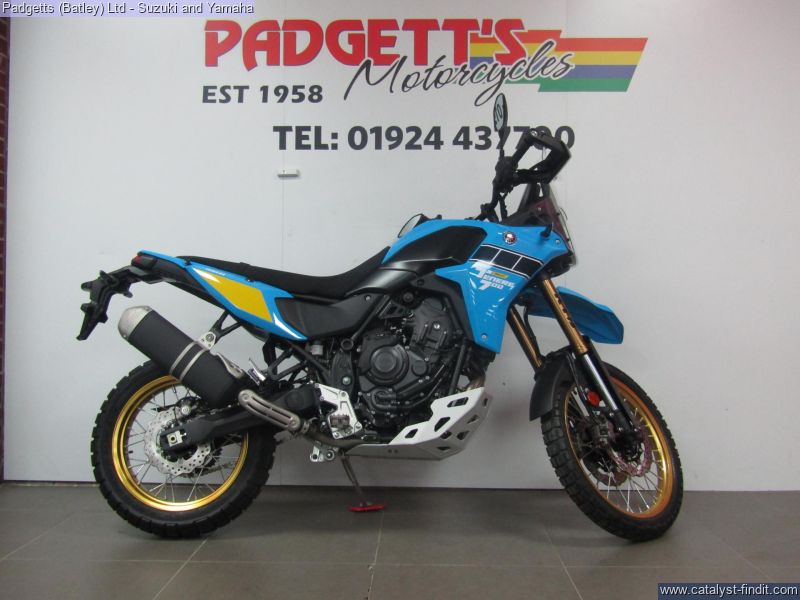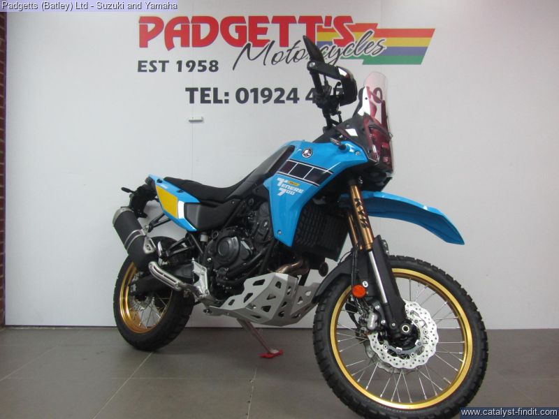 - We present here for sale this Yamaha Tenere 700 Rally. Featuring rally-bred technology including fully adjustable long travel KYB front forks with strengthened tubes, a 4mm aluminium sump guard, lightweight serrated titanium footpegs and slimline bodywork, the Ténéré 700 Rally is one seriously purposeful adventure bike. Distinguishing this Rally version is a unique heritage- inspired colour scheme with gold coloured wheels and Yamaha's iconic speed block design, topped off with the high level front mudguard synonymous with desert racers. With a dominating saddle height of 910mm, the Ténéré 700 Rally's new seat, re-designed fuel tank and modified clutch cover offer more flexibility for you to move around off-road. The cockpit features a new 6.3" TFT dashboard, which comes with a unique 'Raid' layout that presents only the most relevant information you need when taking on the most challenging terrain. Displayed in the style of a rally road book, it's one of three dashboard layouts and just one of the ways in which you can personalize your riding experience and adapt it to the conditions. Nationwide delivery can be arranged from as little as £75. Usual Dealer Facilities including a Large range of clothing, helmets & accessories. Call Padgett's Motorcycles today to ensure that you don't miss out; Suzuki Sales Centre 01924 609808, Honda Sales Centre 01924 437700 and Yamaha Sales Centre 01924 478491.