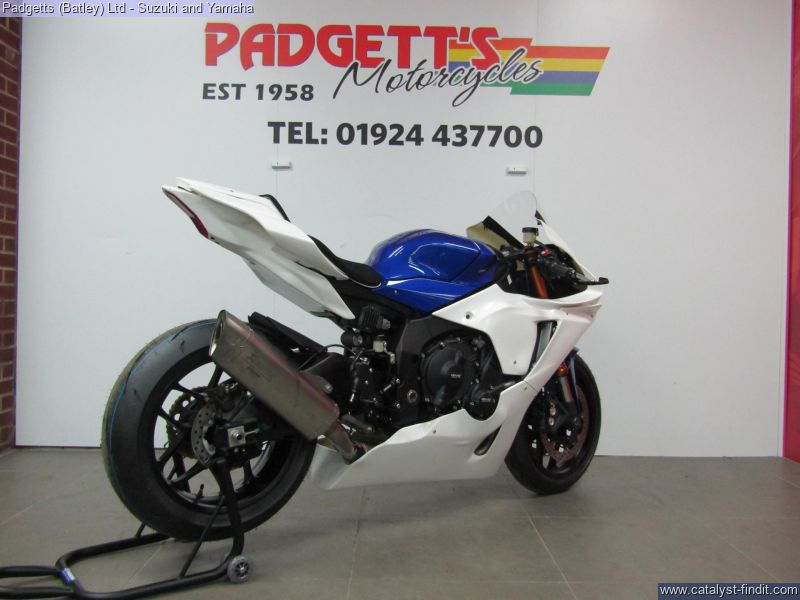 - We present here for sale this Yamaha GYTR YZF-R1. Powered to Race. The R1 GYTR features the remarkable 998cc 4-cylinder CP4 crossplane engine which is a direct descendant of the MotoGP winning M1 race bike, and is available exclusively through the GYTR PRO SHOPS. Its uneven firing sequence delivers linear torque for outstanding performance and high levels of rear wheel traction – combined with its sophisticated GYTR programmable ECU – enables you to push even harder to the chequered flag. Developed by Yamaha’s team of professional race technicians, the new R1 GYTR is a fully prepared track-only superbike that is supplied to you in a race-ready specification, through the GYTR PRO SHOPS. Equipped with a smart package of necessary track parts and performance enhancing racing components, this track machine is ready to take you to the next level. At a glance: - 998cc 4-cylinder Crossplane engine with titanium Akrapovic exhaust, GYTR® Electronics package, GYTR® Chassis parts, GYTR® Drive system, GYTR® Bodywork, Lightweight, high performance CP4 engine, Compact Deltabox frame with lightweight magnesium subframe, 43mm KYB® front forks, Lightweight aluminum fuel tank and Wide range of GYTR® PRO components to tailor your R1 GYTR. The bike is available for viewing and is well worth a look. Finance is available and is subject to status. Part Exchanges welcome. Nationwide delivery can be arranged from as little as £75. Usual Dealer facilities including a Large range of clothing, helmets & accessories. Call Padgett's Motorcycles today to ensure that you don't miss out; Suzuki Sales Centre 01924 609808, Honda Sales Centre 01924 437700 and Yamaha Sales Centre 01924 478491.