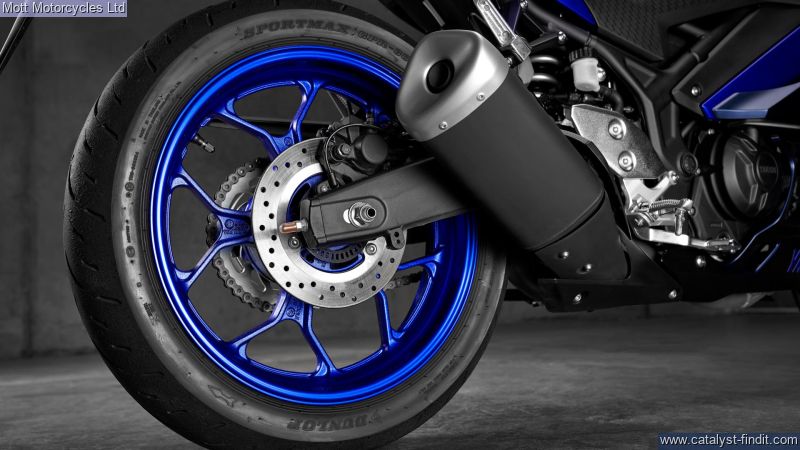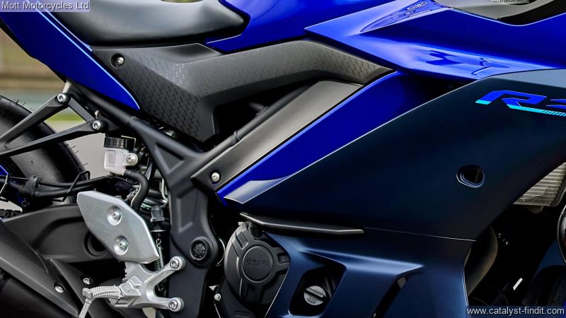 - YZF-R1 style front fairing & screen, High revving 321cc engine for thrilling power, Lightweight A2-licence rider supersport bike, Slim and light chassis with agile, sporty handling, New YZF-R1 inspired dual LED headlights, New 37mm KYB inverted front forks, Lower fuel tank and revised handlebar position, Powerful braking system with ABS, Lightweight wheels and supersport tyres, Balanced 50/50 weight distribution, New digital LCD multi-function instruments.