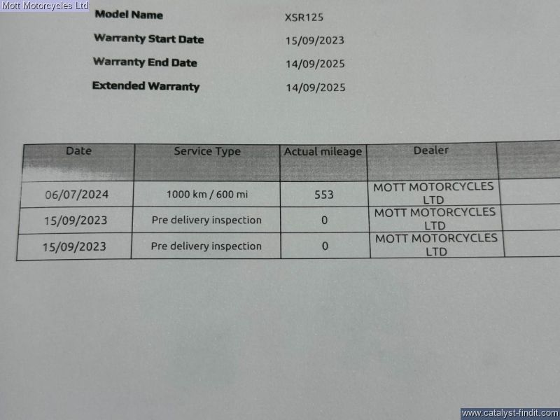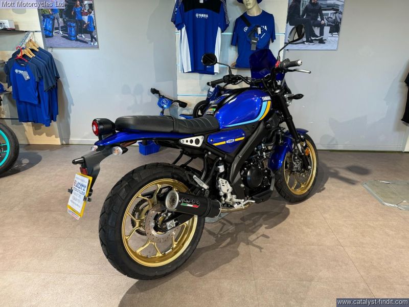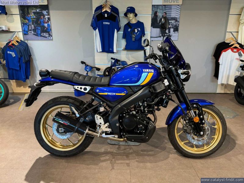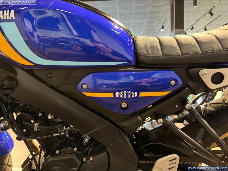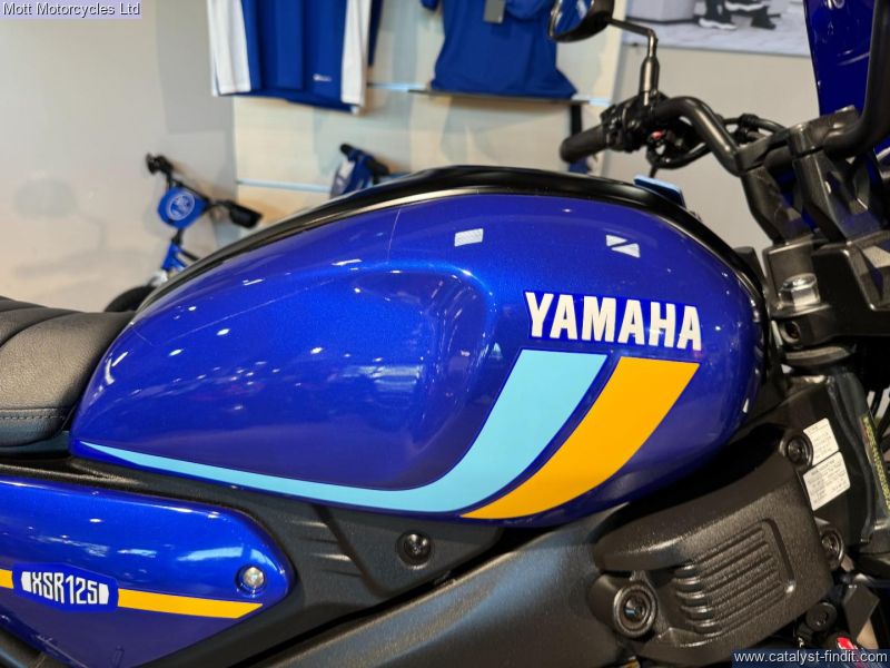 - Yamaha, XSR125, '23 Plate in Gloss Blue. Includes a nice selection of accessories, such as: GPR full exhaust system in black, after market radiator cover, Puig tinted blue screen, middle tank pad and side clear tank protectors. LCD display, gear indicator, fuel gauge, miles per gallon, trips, ABS, disc brakes, good tyre size, 6-speed gear box, manual, great bike for learners and everyday riders, good condition. Originally supplied by us. Full main dealer service history (through us): 553 miles on 06/07/2024. Services recorded online and includes print out. 2 clean diagnostic sheets, 1 service sheet. Owner’s manual included. 1 owner from brand new. 2 main keys. V5 present and HPI clear. MOT not required until 15/09/2026. Balance of Yamaha warranty until 14/09/2025. We have already completed its pre-delivery inspection so a quick turn could be arranged.
