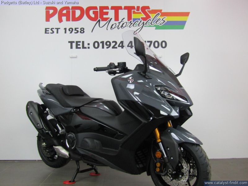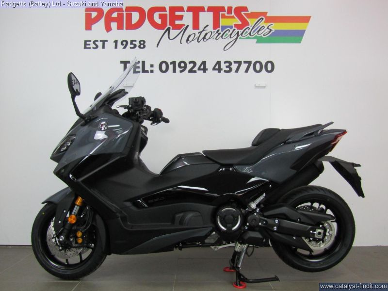 - We present here for sale this Yamaha TMAX 560. New and un- registered. The iconic TMAX sport scooter is the most successful model in Europe – and has been number one every year for two decades. Now Yamaha is taking sports performance to the next level with the new larger-capacity TMAX 560. Quicker, sportier and more dynamic, the new generation TMAX will be your best move. New bodywork with integrated LED front flashers gives this iconic model a more aggressive look that commands total respect on the street. Improved ergonomics ensure easier access and increased comfort – and the pure sports DNA is evident in the slimmer rear end and super-cool T-shaped LED taillight. As soon as you twist the throttle you’ll feel the bigger engine’s increased power that delivers even quicker overtaking and faster acceleration. When you’re riding longer distances on the highway, this is one of the most comfortable and convenient ways to travel. And in town nothing else come close. At a glance it has the following features: More powerful 560cc EU5 compliant engine; New more dynamic and aggressive body design; Improved ground accessibility; Integrated LED front flashers; Lightweight aluminium frame – rigidity & balance; Traction Control System & D-MODE; Large storage space; Smart Key operation; Monotone TFT instrument panel; Motorcycle-type suspension and has My TMAX Connect. The bike will come with 12 months Tax, Datatag'ed, 24 months warranty, 12 Month Yamaha Assist Roadside Assistance, Owner's Manual and Service Book. The bike is available for viewing and is well worth a look. Finance is available and is subject to status. Nationwide delivery can be arranged from as little as £60. Usual Dealer facilities including a Large range of clothing, helmets & accessories. Call Padgett's Motorcycles today to ensure that you don't miss out; Suzuki Sales Centre 01924 609808, Honda Sales Centre 01924 437700 and Yamaha Sales Centre 01924 478491. PLUS £180 OTR FEES