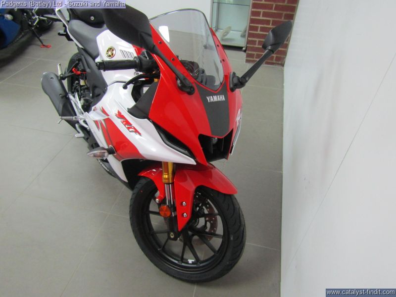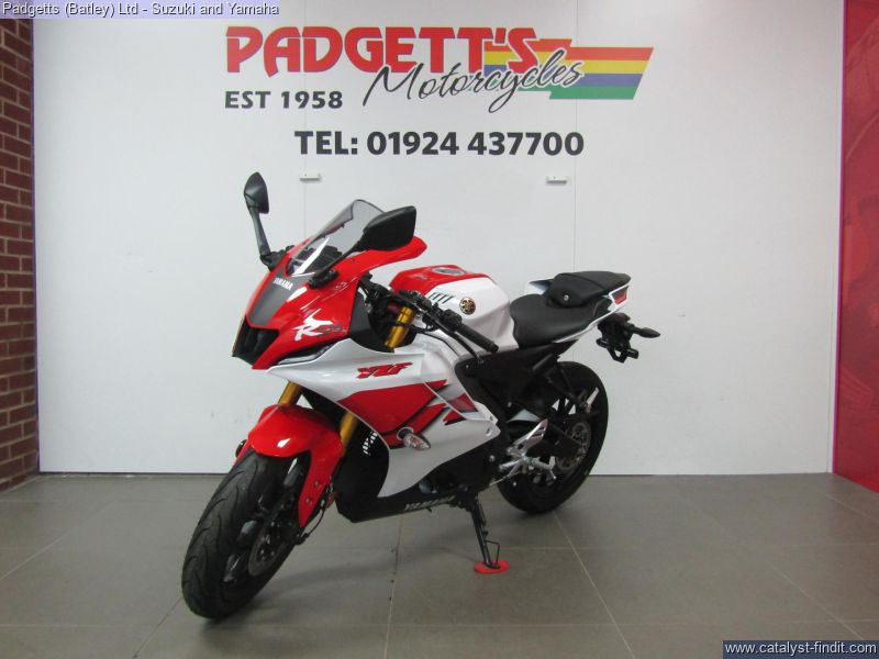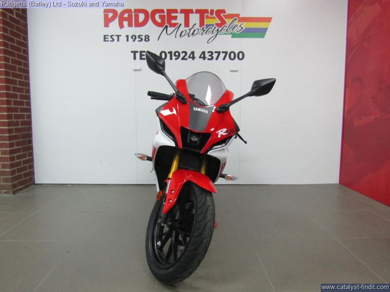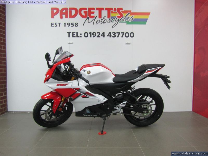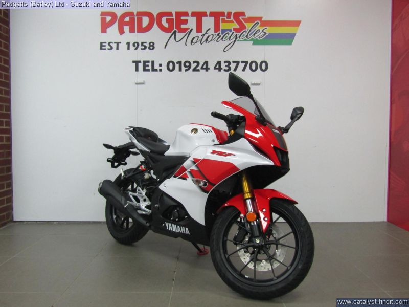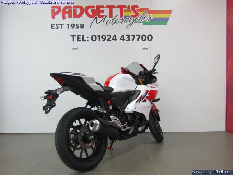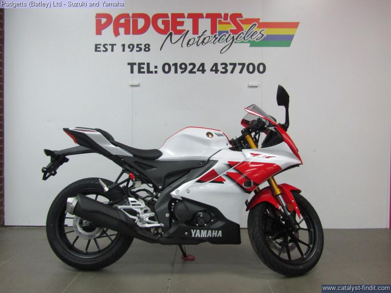 - We present here for sale this 2026 Yamaha YZF-R125. Manufactured to a best-in-class specification and featuring pure race-bred engine and chassis technology, the R125 is Yamaha's ultimate lightweight Supersport. With new graphics as well as a next generation Icon Blue colour scheme that strengthens its R-Series family DNA, this lightweight 125cc Supersport has a serious big-bike attitude. R-Connection. Featuring race-developed Supersport geometry, the Deltabox chassis is equipped with state-of-the-art 41mm KYB upside- down front forks and link-type rear suspension for super- agile handling. The footrest/seat/handlebar layout gives a sporty riding position for optimum control – and smartphone-connected 5-inch TFT instruments keep you informed – and in touch. And equipped with a powerful central LED headlight and dual LED position lights and M- shaped nose, its aggressive new face oozes pure R-Series DNA. For strong performance at all speeds the 125cc 4- stroke engine is equipped with Yamaha’s power-boosting Variable Valve Actuation (VVA) technology and exhaust updates – and the traction control system and assist & slipper clutch enhance controllability when you’re accelerating and decelerating. With a premium finish available in a choice of next generation Icon Blue and Tech Black with new graphics, R125 has everything you need to connect to R/World. The bike is available for viewing and is well worth a look. Finance is available and is subject to status. Part Exchanges welcome. Nationwide delivery can be arranged from as little as £75. Usual Dealer Facilities including a Large range of clothing, helmets & accessories. Call Padgett's Motorcycles today to ensure that you don't miss out; Suzuki Sales Centre 01924 609808, Honda Sales Centre 01924 437700 and Yamaha Sales Centre 01924 478491.