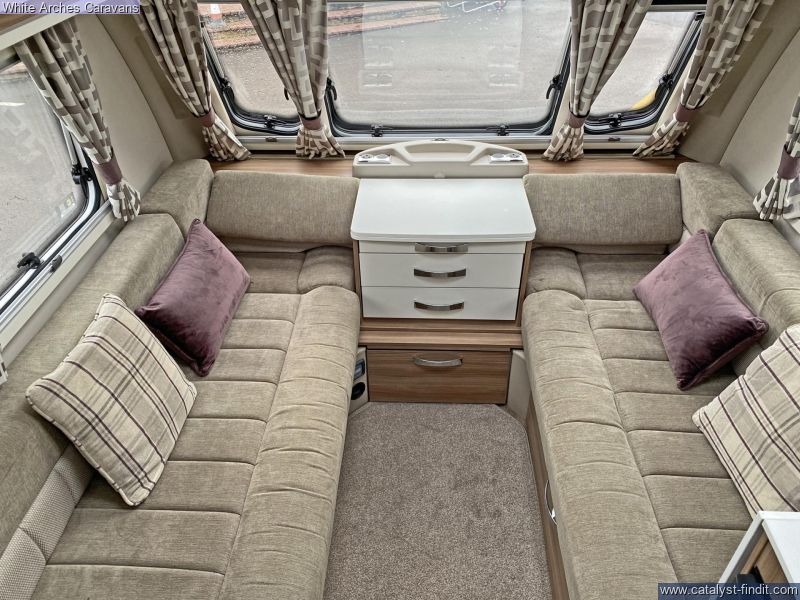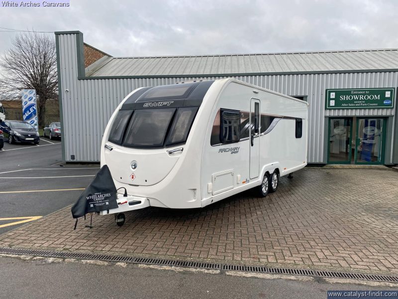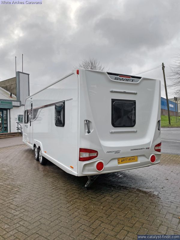 - Unleash your inner adventurer with the sporty and stylish 2018 Swift Archway Harringworth Sport! Calling all active couples and outdoor enthusiasts! The 2018 Swift Archway Harringworth Sport caravan is your perfect companion for exploring the great outdoors in comfort and style. Step inside the dynamic 20' 7" interior and discover a spacious and practical layout. The bedroom at the rear is a relaxing haven with a fixed double bed and plentiful storage that provides a comfortable retreat after a day of adventure, while the spacious lounge offers a versatile space for dining, relaxing, or converting into additional sleeping if required. Fuel your adventures in the well- equipped kitchen, featuring a 3-gas hob, grill, microwave, sink, fridge and ample storage. The functional washroom boasts a shower, toilet, and hand basin, ensuring convenience and hygiene on your expeditions. But what truly sets the Harringworth Sport apart is its adventurous spirit, with its eye-catching exterior graphics and alloy wheels it exudes a sense of dynamism and adventure. The 2018 Swift Archway Harringworth Sport is more than just a caravan; it's a passport to adventure. Contact our friendly sales team on 01933 353818 today and embark on your next escapade in style! Whilst visiting us why not try our lovely coffee shop which offers a delightful array of hot & cold drinks, light meals, snacks, and heavenly cakes.