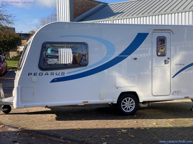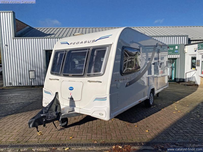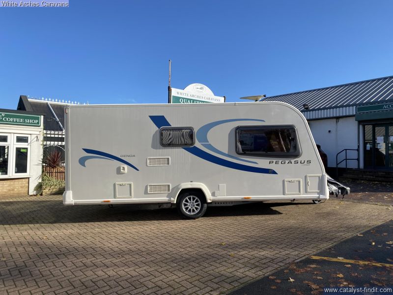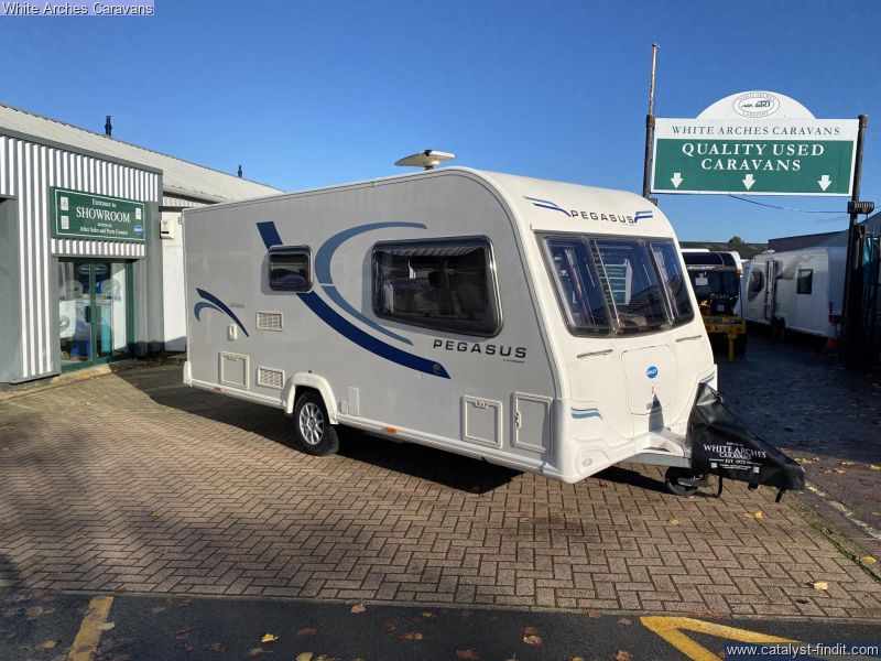 - White Arches Caravans are pleased to offer for sale this well presented 2012 BAILEY PEGASUS 2 caravan An airy lightweight 2 berth with a substantial end washroom and a huge front lounge that can be used as 2 singles or converted into a large double. It has a good size kitchen area including fridge freezer, oven, 4 gas burner hobs and a microwave. Also included are: Truma combi blown air heating and hot water system, removeable carpets, Alko stabiliser, alloy wheels, cd-player, under seat storage and front gas locker. Please call our friendly sales team on 01933 353818 for more information. Whilst visiting us why not try our lovely coffee shop which offers a delightful array of hot & cold drinks,light meals, snacks, and heavenly cakes.
