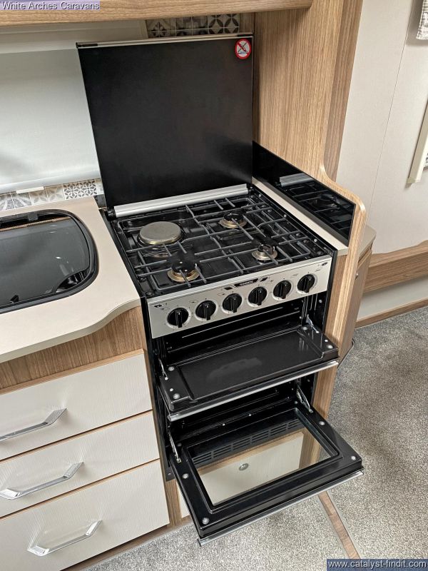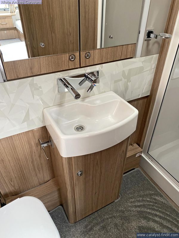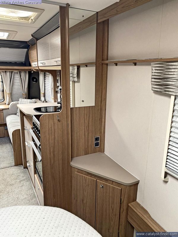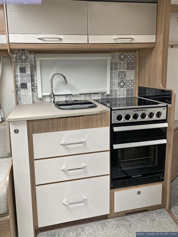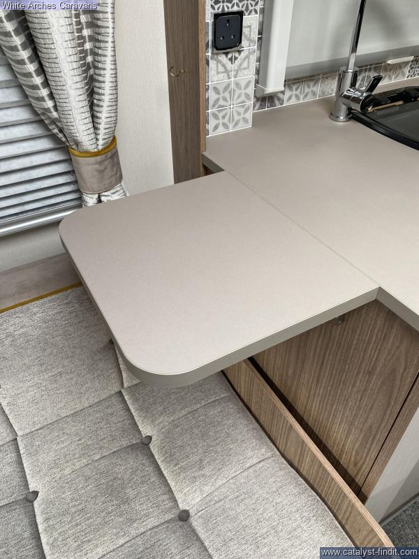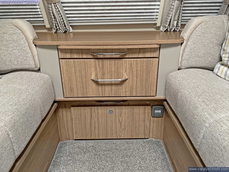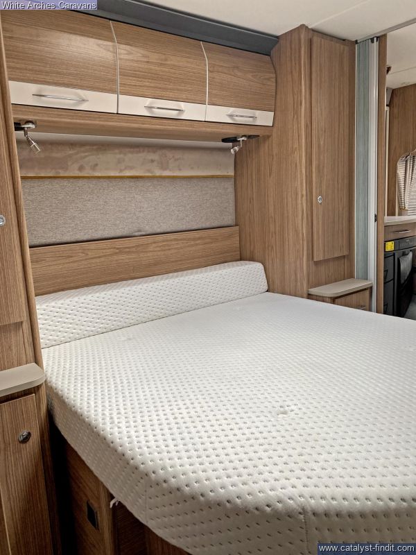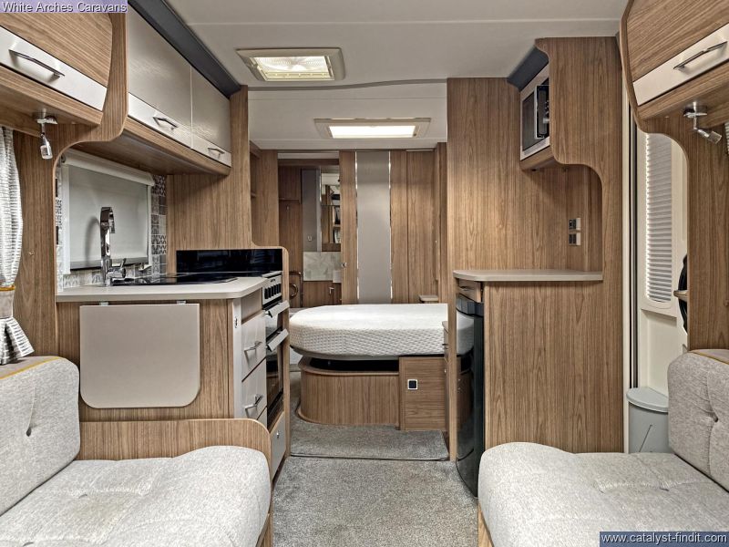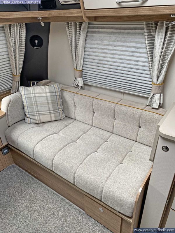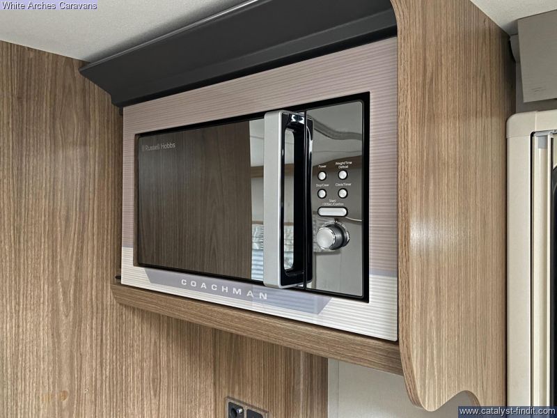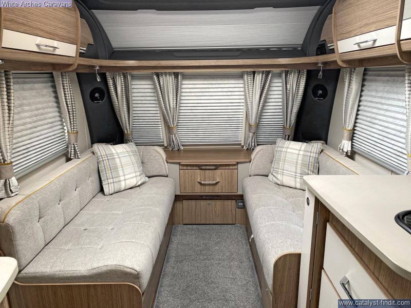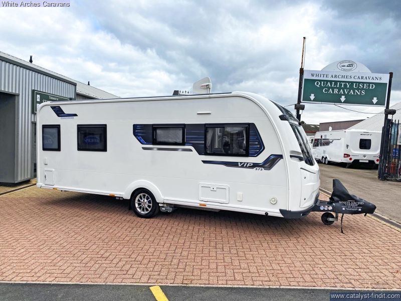 - Unleash Your Wanderlust: Immaculate 2019 Coachman VIP 575 Caravan. Calling all adventurers! Embark on unforgettable journeys with the impeccably maintained 2019 Coachman VIP 575 touring caravan. This luxurious 4-berth caravan offers the perfect blend of comfort, functionality, and style, ideal for families or couples seeking idyllic escapes. Spacious Lounge: Unwind in the generously sized lounge, which conveniently converts into a cosy bed. Enjoy family meals, play board games, or simply soak in the stunning views. Dreamy Bedroom: Drift off to sleep in the plush fixed island bed. Ample under-bed storage keeps your belongings organized. Culinary Delight: Whip up a wonderful meal in the kitchen, which includes, hob, grill, oven, microwave and fridge/freezer. End Washroom: The well-appointed washroom boasts a spacious shower, toilet, and vanity unit, providing a refreshing oasis after a day of exploration. High-Quality Interior: Indulge in the caravan's luxurious feel with premium upholstery and stylish finishes that create a warm and inviting ambiance. 4-Berth Layout: Sleeps four comfortably, perfect for families or couples with guests. We look forward to helping you turn your caravanning dreams into reality! Please call our friendly sales team on 01933 35818 who will be happy to assist you or pop in for a site visit. Whilst visiting us why not try our lovely coffee shop which offers a delightful array of hot & cold drinks, light meals, snacks, and heavenly cakes.