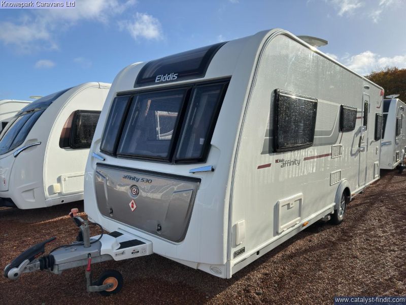 - The 2016 Elddis Affinity 530 is a well-equipped 3-berth, single-axle caravan featuring a side dinette layout and a spacious end washroom. Designed for comfort and convenience, it comes fitted with Alde heating for year-round touring, an Alko ATC for enhanced towing stability, and a motor mover for easy maneuvering. With a maximum weight of 1,406kg, this caravan offers a perfect balance of practicality and luxury for couples or small families. Finance Available & Part Exchange Welcome.