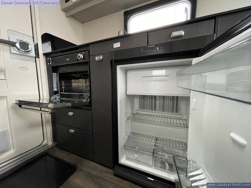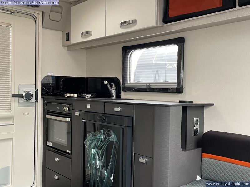 - The Swift Basecamp 2 is the perfect lightweight adventure caravan from one of the UK's top manufacturers. It features a slimline solar panel, diamond cut alloy wheels, and a touchscreen command control panel, making it an impressive choice. At only 5.1M long, the Basecamp 2 is compact and simple to tow. The open interior and big front window give couples plenty of space to relax, while the galley kitchen allows for a variety of camping cooking with an oven, grill, and hob included. The folding benches can store a variety of outdoor items, ranging from kayaks to surfboards, bicycles to skis - making it the ideal caravan for any excursion.