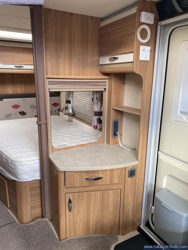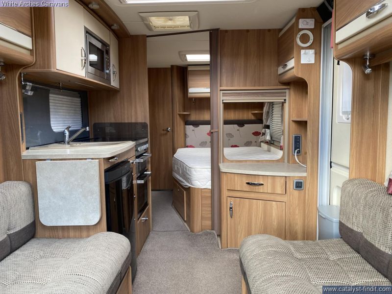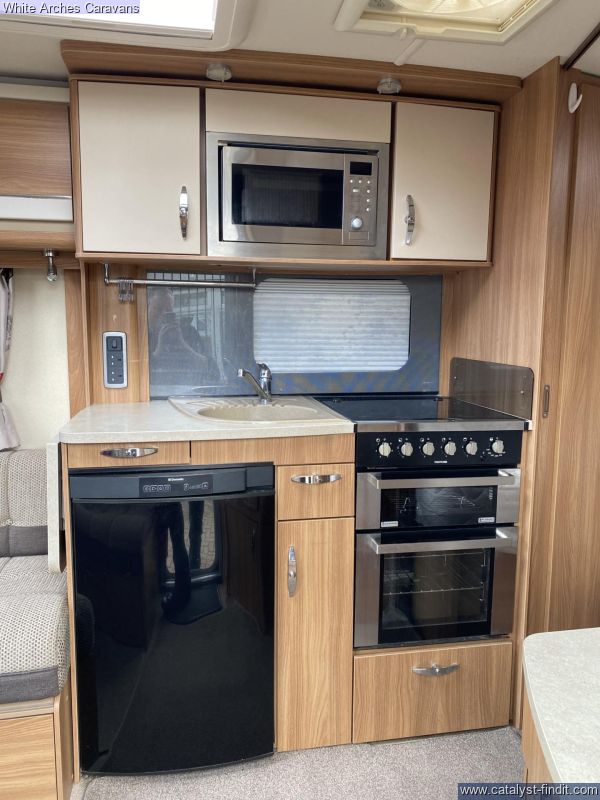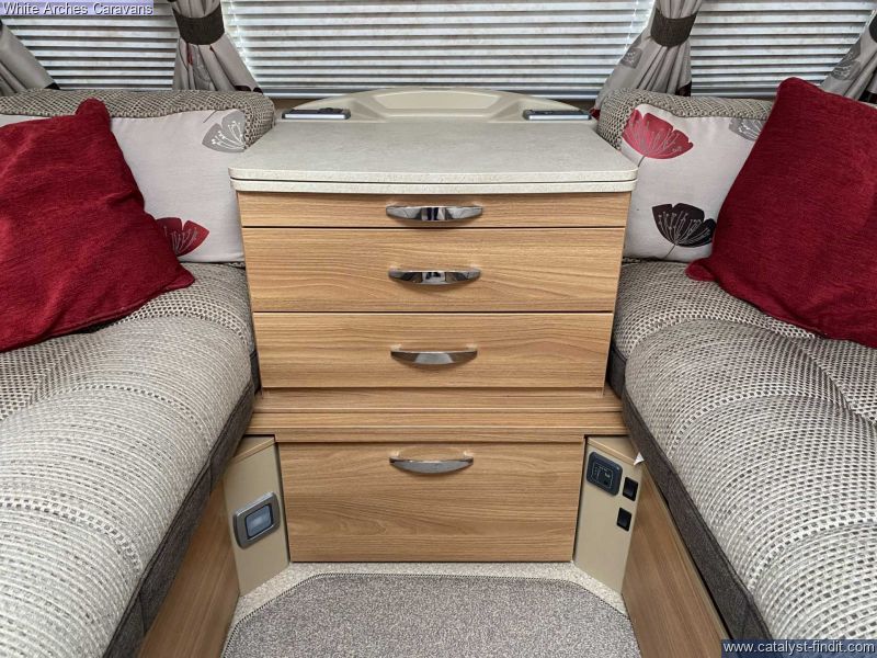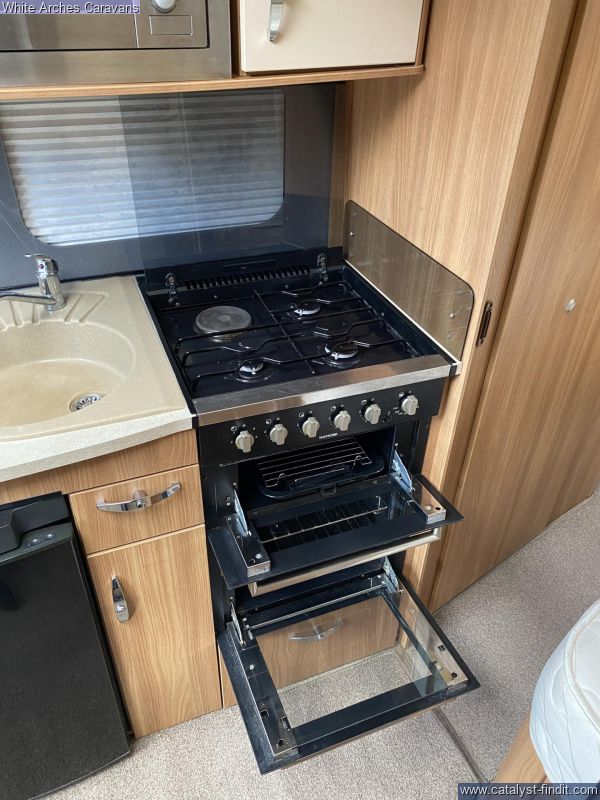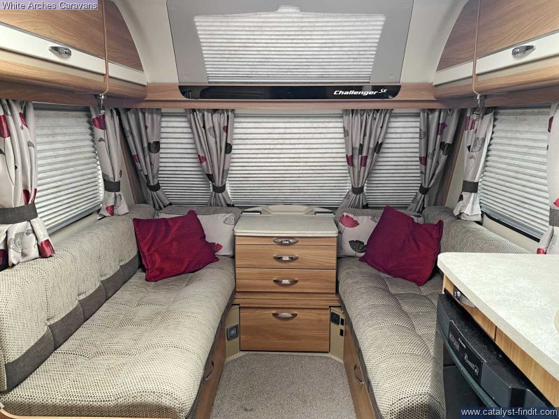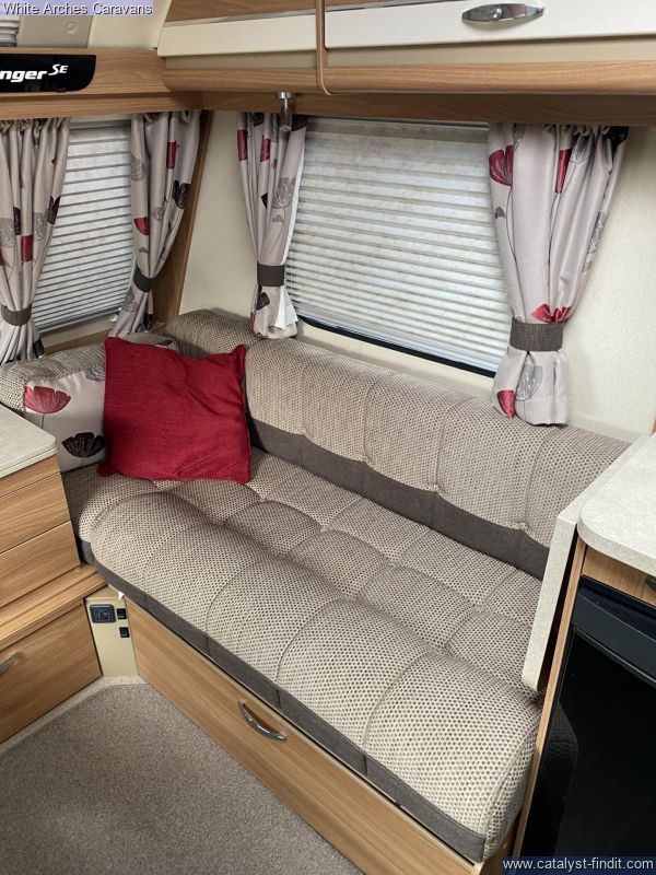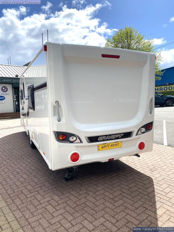 - Explore in Comfort with this delightful Swift Challenger 570 caravan Calling all adventurers! Are you ready to embark on unforgettable journeys and discover hidden gems? This spacious 4-berth caravan caters to groups seeking comfort, functionality, and a home away from home on their adventures. Spacious Lounge: The generous lounge area provides a comfortable space for meals, game nights, or simply relaxing and enjoying the view. It conveniently turns into a convenient sleeping area when you are ready to rest your head. Functional Kitchen: A great space to whip up a tasty meal or snack, the kitchen includes oven, grill, hob, microwave and a fridge. Dreamy Double Bedroom: Drift off to sleep in the comfortable fixed double bed , featuring ample storage underneath for all your essentials. Large Washroom: The well-appointed washroom boasts a spacious shower, toilet, and vanity unit, ensuring a refreshing oasis after a day of exploration. Quality Interior: The caravan boasts a warm and inviting ambiance with stylish finishes and comfortable upholstery. 4-Berth Layout: Sleeps four comfortably, making it ideal for families with young children or couples with guests. Large External Storage: Pack everything you need for your adventure with the ample storage space for camping essentials. This Swift Challenger 570 is a fantastic all-rounder, perfect for creating lasting memories on your caravanning adventures. We look forward to helping you turn your caravanning dreams into reality! Please call our friendly sales team on 01933 35818 who will be happy to assist you or pop in for a site visit. Whilst visiting us why not try our lovely coffee shop which offers a delightful array of hot & cold drinks, light meals, snacks, and heavenly cakes.