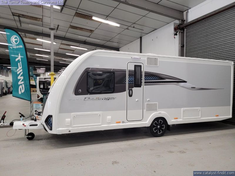 - The Swift Challenger 580 is a 4 berth touring caravan with an fixed transvered island bed with rear washroom making it ideal for those who wish to own a tourer with the a fixed bed and an open plan layout with all the modern refinments.