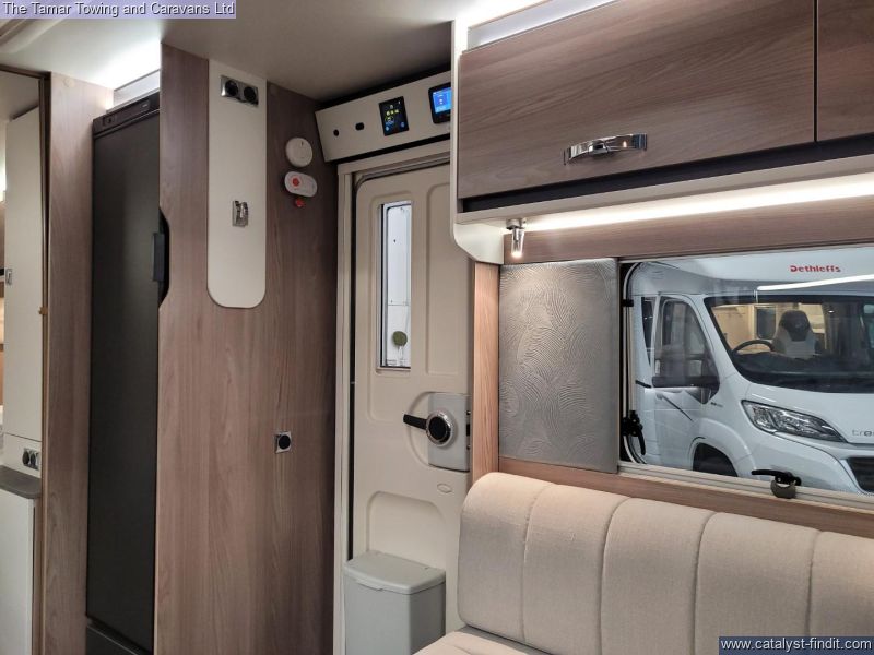 - Key Features: 1. New Theford tall 142 litre fridge Freezer 2. NEW Truma CombiNEO 2 in 1 heating sytem & hot water. 3. NEW 15" Alloy wheels 4. NEW sprung seat bases and tri-foam backrests for optimal seating, sleeping comfort and easy storage. 5. LED lighting throughout with over-locker lights, lounge downlights, wireless charging pad and front USB points for better connectivity. 6. Thetford oven/grill with three-burner gas hob and one electric hotplate. 7. Solar Panel 6. Swift Smart Construction