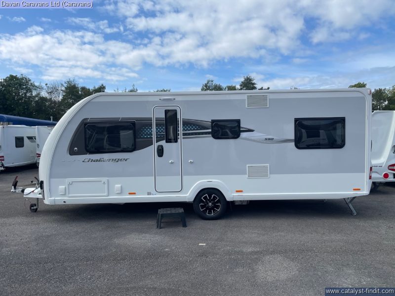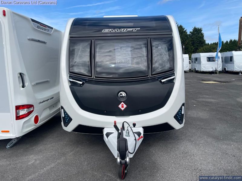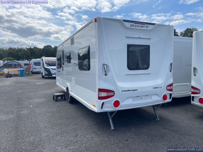 - A clever family layout - Single axle with rear bunks and dinette. The 2026 Swift Challenger 590 is A layout with the dinette alsofolding out into bunk beds, making this caravan a lightweight 6 berth. A perfect balance between affordability and amount of spec. Designed for families and seasoned caravanners alike the challenger range offers a modern, well quipped space at an affordable price. It builds on the essentials with added comfort including the NEW Truma CombiNEO for continuous hot water. Ideal for longer showers or back to back showers for the whole family. Challenger is made for easy getaways, comfortable living and memorable holidays.