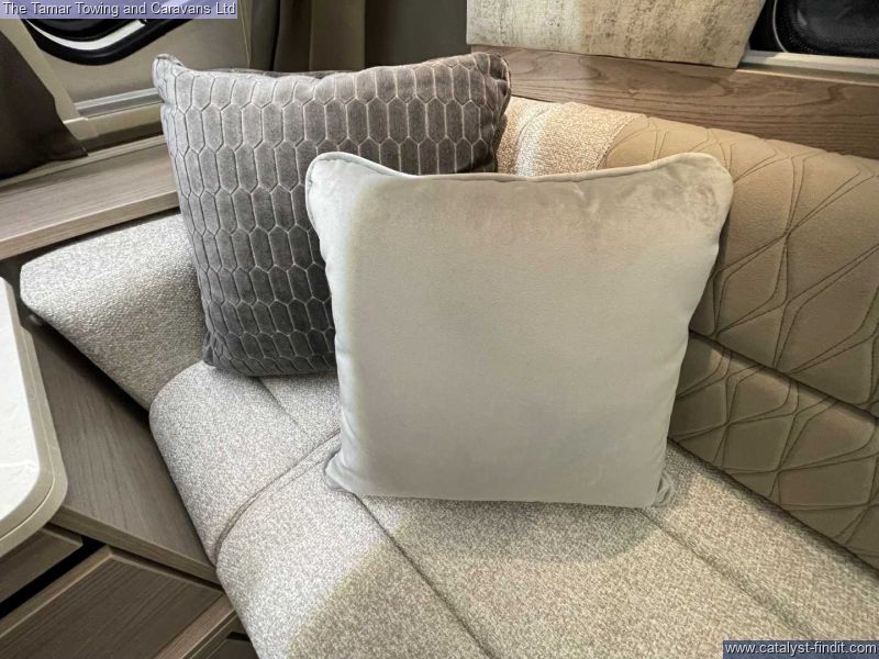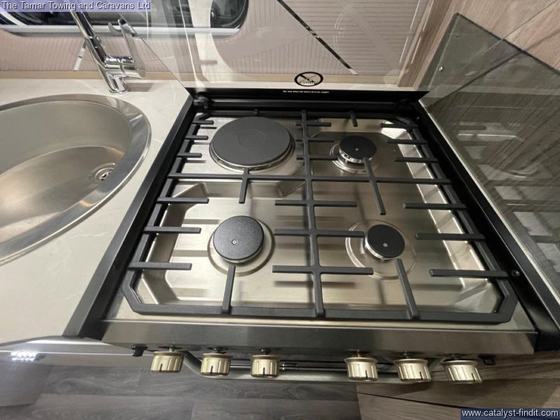 - Full Diamond Cut alloy wheels Heavy duty jockey wheel Grey GRP Sides Exclusive graphics Off side awning light Onboard 4G Wi-Fi Swift Command control panel with built-in Command Tracker* Wireless mobile phone charger Upgraded oven with cast iron frets and light Exclusive Willow fabric scheme with automotive quilt stitching
