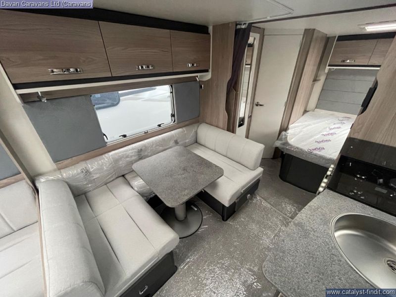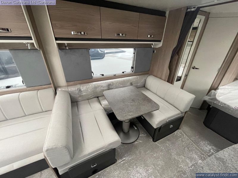 - 2026 Swift Challenger Grande 640 - 8ft wide twin axle caravan with rear fixed bed and dinette that converts into a double bed. Making this a perfect layout for couple and families alike. A perfect balance between affordability and amount of spec. Designed for families and seasoned caravanners alike the challenger range offers a modern, well quipped space at an affordable price. It builds on the essentials with added comfort including the NEW Truma CombiNEO for continuous hot water. Ideal for longer showers or back to back showers for the whole family. Challenger is made for easy getaways, comfortable living and memorable holidays.
