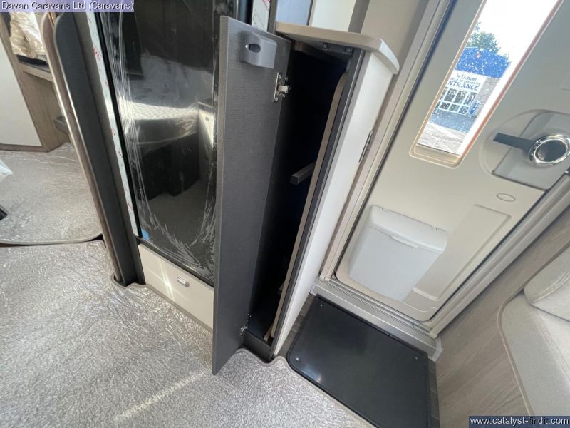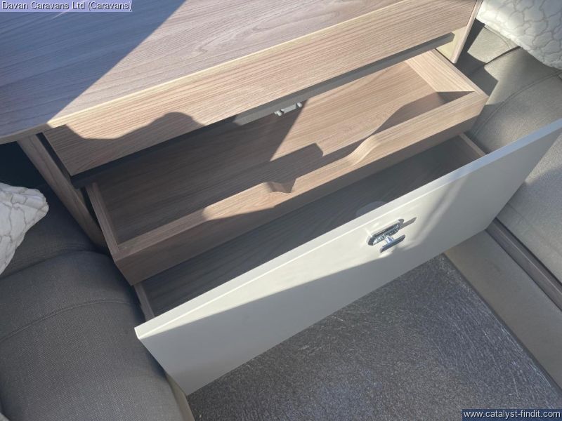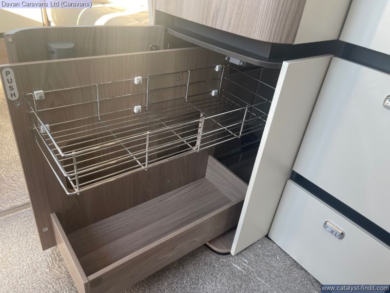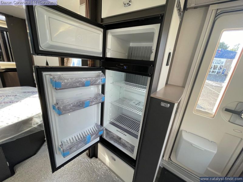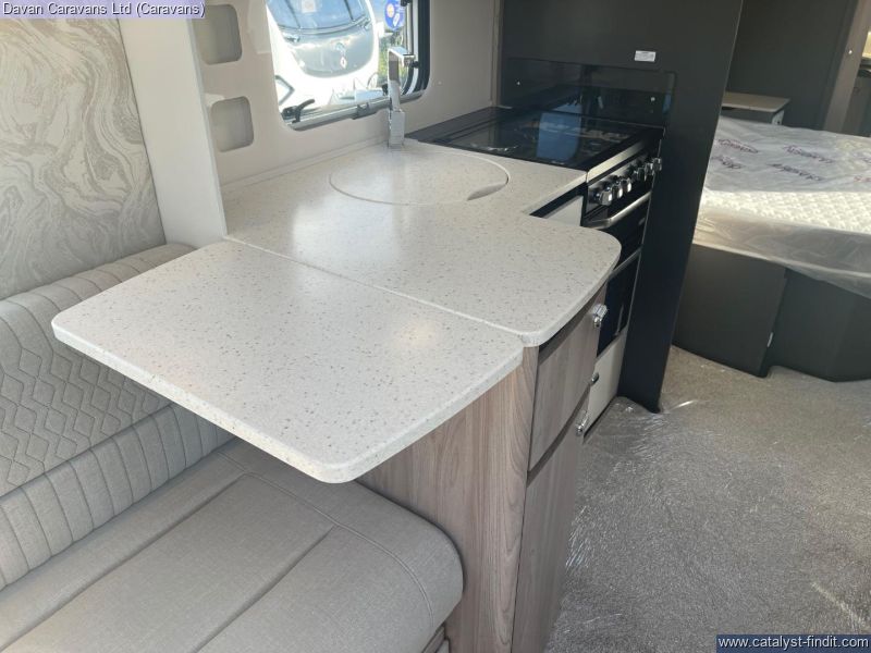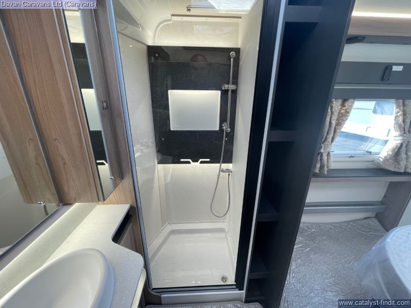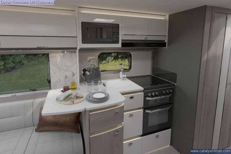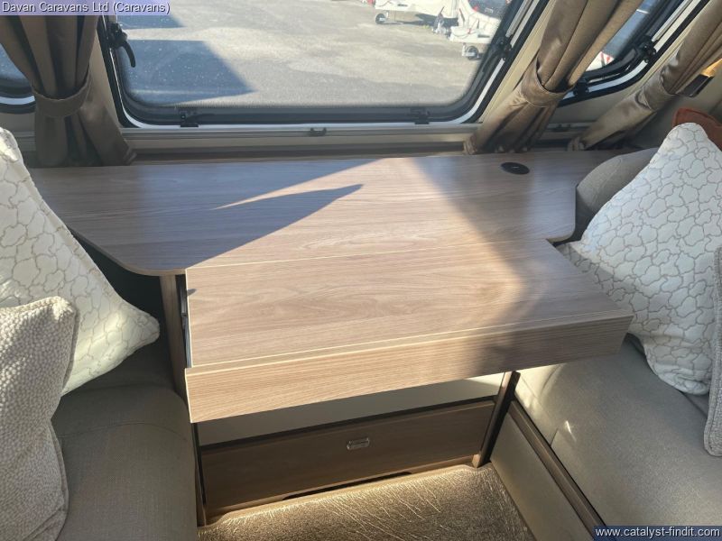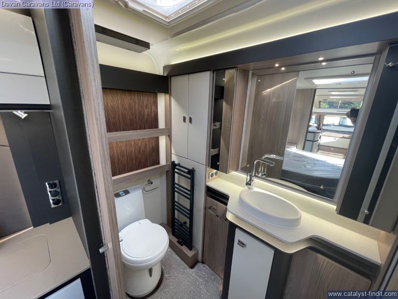 - The highest level of touring comfort and style. The Elegance Grande 845 is a caravan with a large rear washroom and spacious central bedroom all on an 8ft wide chassis. The Elegance range is made up all of 8ft wide layouts with refined finishes and boutique inspired design. From the superior Swift command control panel to the premium Duvalay Mattress, every detail is crafted for a luxurious experience ,perfect for all year round touring. Self levelling and roof mounted air conditioning are both factory fited options, if you order early enough.Enquire for details.