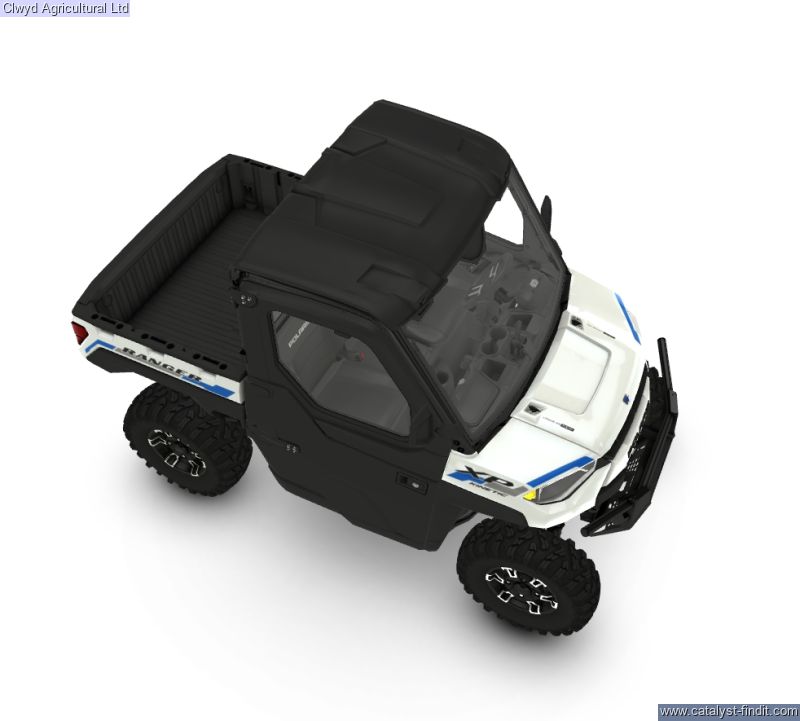 - • 14.9 kWh Lithium-Ion Battery with up to 45 Miles Estimate Range • Factory-Installed 3 kW On-Board Charger • 29" Pro Armor X-Terrain Tires and 14" Wheels • 14” Ground Clearance • LED Headlights • Full-Coverage Front Bumper • 12V Cargo Box Power Port with Integrated Dash Switch • 1,250 lb. (567 kg) Box Capacity • 2,500 lb. Towing Capacity • Estimated range - 70 km (*estimated range for 3- seat RANGER XP Kinetic traveling at 25 mph with 250 lbs of cargo) • Charge from a 120V or 240V outlet • User selectable drive modes, ECO+, Standard and Sport • In dash USB port • 12v Cargo box power port • Under seat storage • Dual glove box • 6 x Cup holders • 7” infotainment display screen • Premium Cab System - Glass Tip Out Windshield and Manual Crank Windows Doors. The kit includes also: Wiper, Sport Poly Roof and Glass Rear Panel • EU Spec fitted with mirrors, indicators, manual handbrake, horn and number plate provision • Not homologated for road use, Agri use only (1.5 miles from land) • 2 Years standard warranty (Excluding travel cost)