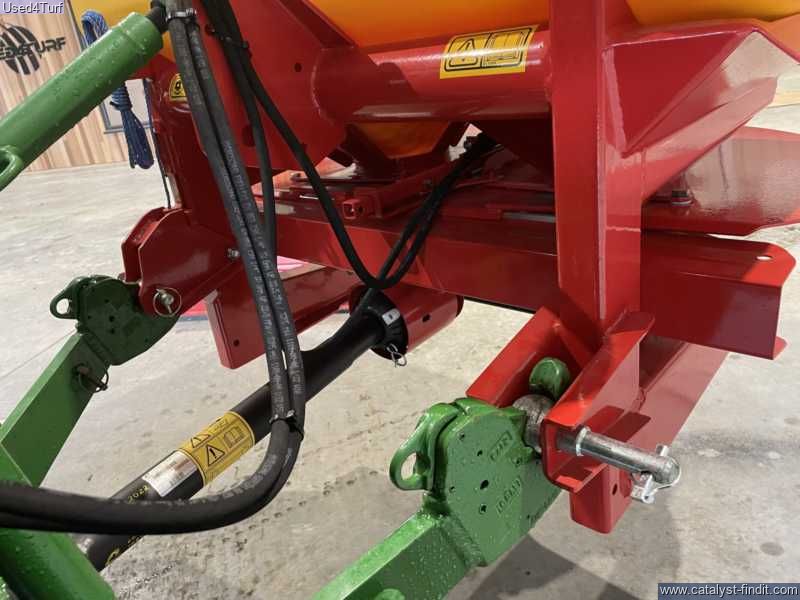 - Category l/ll 3-point linkage mounted implement Easy to clean removable polypropylene hopper 675 litres capacity (600kg bag) Stainless steel hopper sieve Twin stainless steel discs give a quadruple overlap spread pattern Single-point application rate adjustment Hydraulic shut-off Hopper cover.