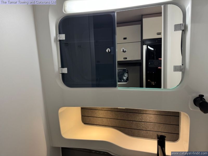 - External cold water shower point Stylish design 16" alloy wheels External BBQ point Truma CombiNeo heating and hot water system 120W solar panel and regulator Rear garage with lighting Rear reversing camera Ultra-low energy LED lighting system Dedicated USB points