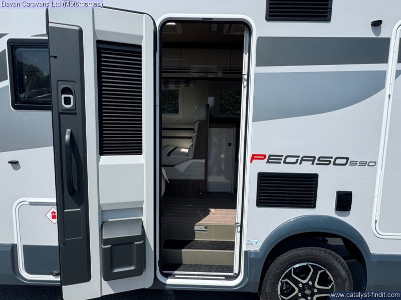 - SALE PRICE - WAS £83,685 - NOW £79,995 - SAVE £3,690 ! 140 BHP AUTOMATIC . Introducing the Roller Team Pegaso 590, the epitome of elegance and innovation in the world of motorhomes. Perfectly suited for couples or small families, this luxurious vehicle offers four spacious berths, ensuring that every journey is as comfortable as it is memorable. Built on a robust A-Class chassis, the Pegaso 590 combines superior drivability with sleek, sophisticated styling, epitomizing the pinnacle of Italian engineering and design. The high- specification design features a large rear bathroom, offering an oasis of comfort and convenience that rivals the finest hotels. The meticulously designed layout offers a harmonious blend of functionality and aesthetic appeal, making it an ideal sanctuary on wheels. Step inside the Roller Team Pegaso 590 and be enveloped in a world of luxury and high specification. Every detail of the interior reflects the finest Italian craftsmanship, from the sumptuous furnishings to the state-of-the-art amenities. Whether you’re traversing scenic coastal roads or setting up camp in the heart of nature, the Pegaso 590 ensures that you do so with unparalleled comfort and style. Elevate your travel experience with a motorhome that embodies the essence of luxury, perfect for those who demand the best in both form and function.