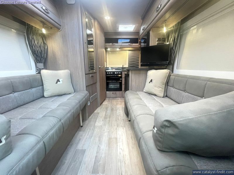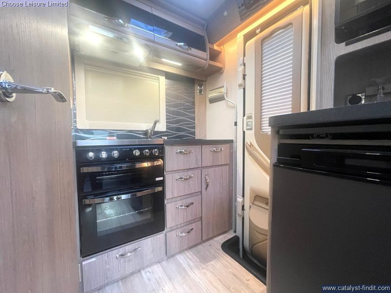 - The most compact of motorhomes at 5.75m, which belies the space available inside this iconic model. This Nuevo has a great specification and includes a space saving and economical LPG gas tank. The interior is light and modern and everything is set out perfectly. The front lounge gives you a really nice, comfortable relaxation area which then effortlessly changes into a good size double for night. The kitchen has a fantastic layout with so much space to work in for a small van. Finally the bathroom does not disappoint either and provides adequate storage for all of your toiletries, plus beside the bathroom is a large storage cupboard to house your towels, bedding or clothes. A winner if you want a comfortable van on a small footprint! Technical: