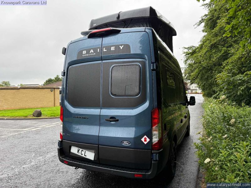 - The Bailey Endeavour B64 Campervan is a compact yet versatile camper designed for adventurous travelers who value comfort on the road. This 4 berth campervan features a spacious front lounge that easily converts into a double bed or two single beds, offering flexibility for daytime and nighttime use.It also has a pop up roof which accomodates an additional 2 people. Built on a Ford Transit 2.0l, 165hp, 8 Speed Automatic, this is a brilliant van to drive. Key featuers include Pop Top Roof, 3.5m Awning, Fully equipped kitchen with a Thetford 90L compressor fridge, 3-ring gas hob, combination oven, and grill, Space-saving combination washroom with onboard shower and tambour partition door, All-weather touring with market-leading insulation and Truma Diesel Combi D4E heating and ready for off-grid adventures with a 100W Truma solar panel and 92Ah leisure battery. This vehicle is our demonstrator model, call us to find out about availability. Finance Available & Part Exchange Welcome.