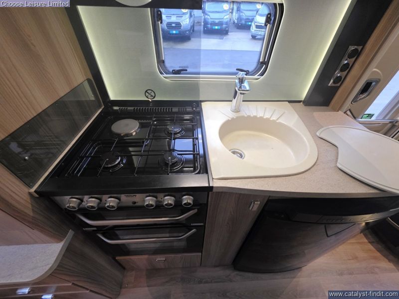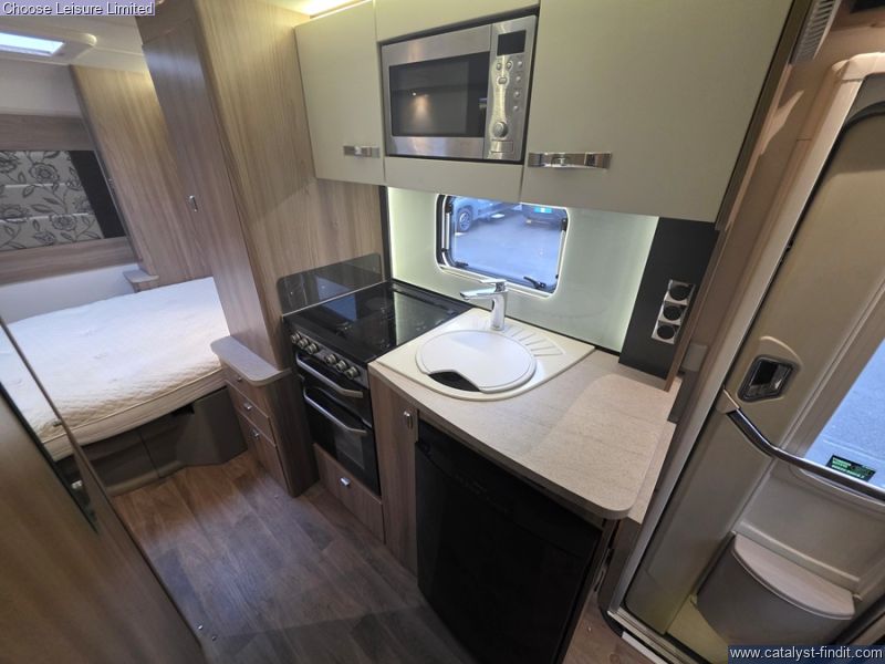 - Walk into a pleasing interior ambience with a social lounge area. The front dinette makes the ideal space for meal times, games nights or just a space to relax. The mid-ship kitchen is well equipped with plenty of worktop space, which can extend as required. Star of the show is the rear bedroom area which features a transverse fixed island bed, which feels like a real bedroom space with plenty of storage. For the times when you want to use the extra 2 berths, the lounge/dinette area can be transformed into another double. A desirable model with a good floorplan!