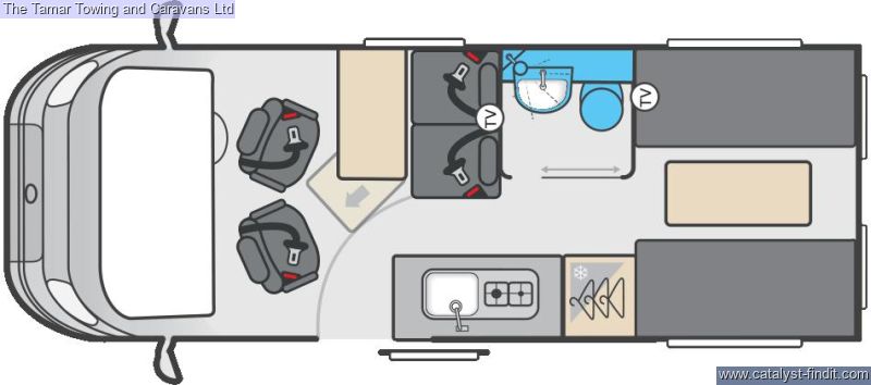 - The 244 is a 4 berth with 4 travelling seats and an end lounge. This is a 2.2 litre Fiat with 140hp auto gearbox. Swivel captain seats at the front and a dinette with 2 forward facing seats and a removeable table. There is a galley kitchen with 2 burner hobs and oven with grill and a good size compressor fridge. The washroom has a shower, toilet and wash basin. At the rear in the lounge with parallel seats that will pull out to make a double bed. And don't for get the pop up roof with folding ladder for access up to the roof with a huge double bed.