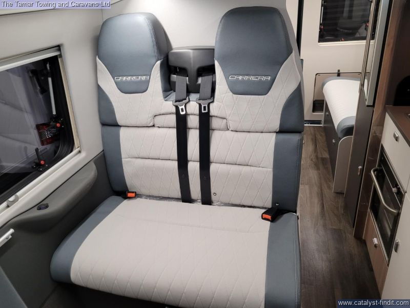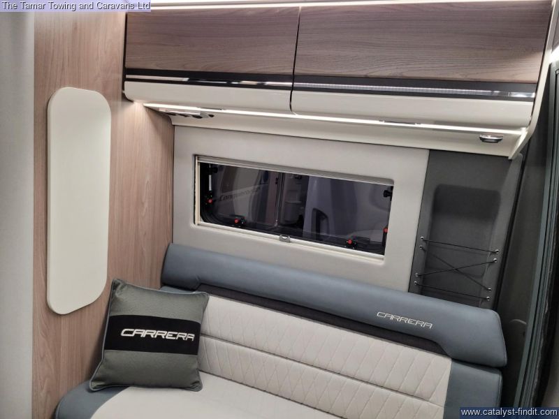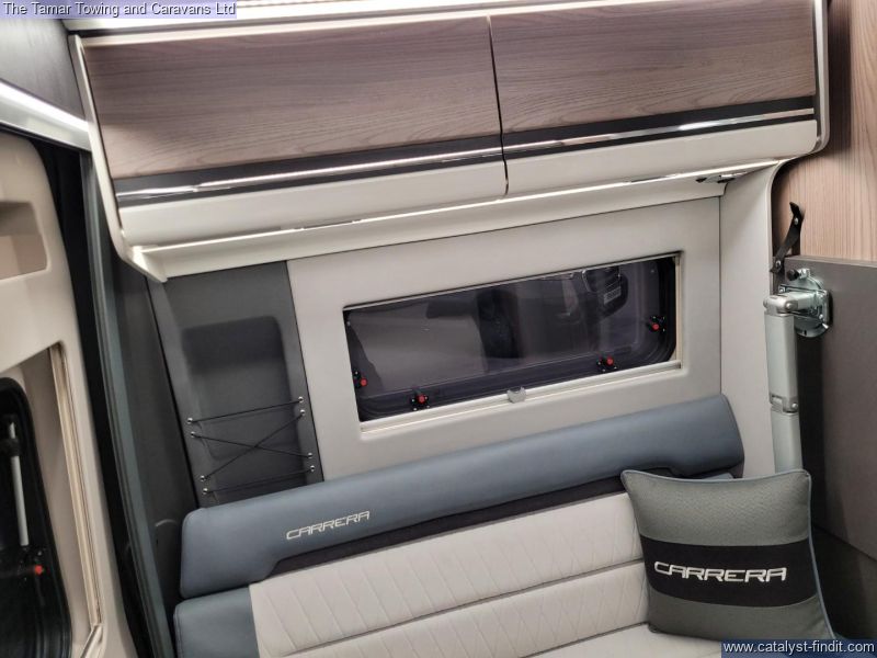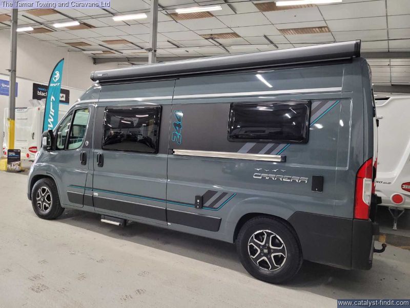 - The Carerra has a great specification with whale heating and hot water system and touch screen Swift command control panel. There is also a solar panel and Thule canopy awning. This vehicle has also been fitted with a detachable towbar.