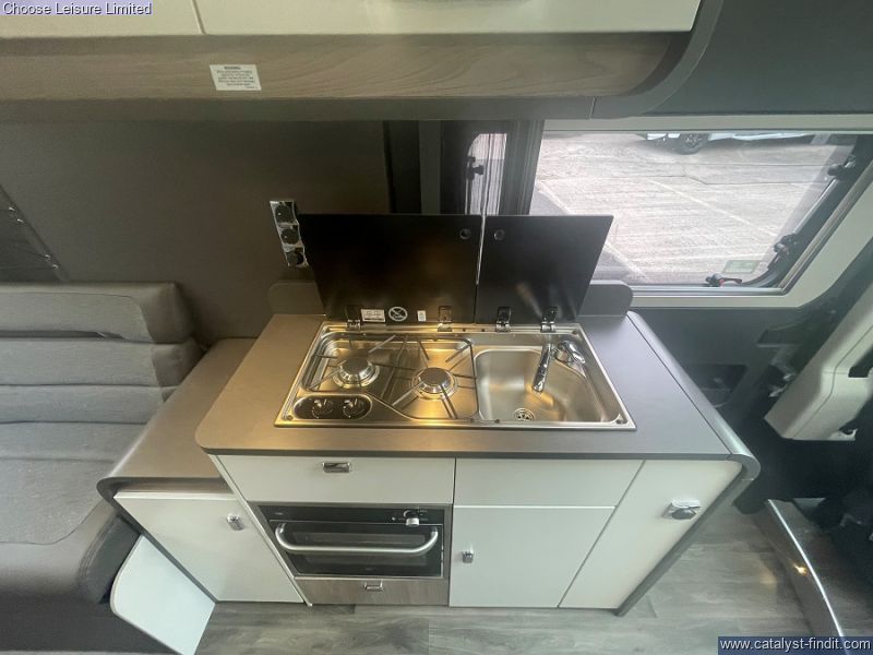 • Inside, enjoy a refreshed interior designed with style, comfort, and practicality in mind, making it perfect for both everyday use and relaxed campervan living. Carrera is the ideal vehicle for both everyday use and for taking on adventures whenever the mood takes you. Marvel at the onboard kitchen facilities complete with combination two burner hob and Oven with grill function. A 90 litre fridge/freezer and extra foldout worktop space when preparing a meal. The smart new Acacia soft furnishing scheme features stain resistant and easy to clean fabric so practicality is always key. The washroom includes a shower tray with foldaway basin plus a black vanity tap and washroom fittings. Cassette toilet, vanity cupboard and decorative lighting enhance this space further. Feel safe while you're away from home with VIN CHIP™ identification system concealed within construction to deter theft and aid quick recovery, Key fob operated remote central locking, Smoke alarm and Carbon monoxide alarm.