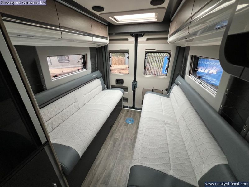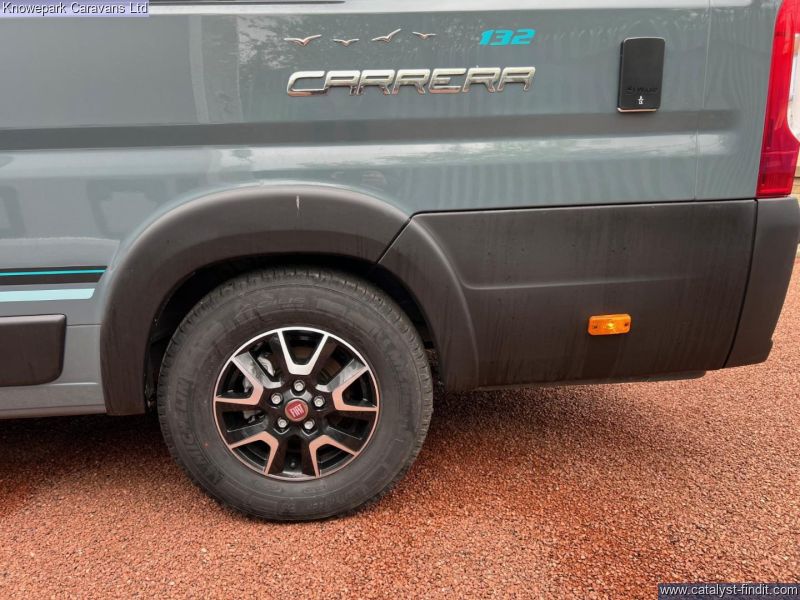 - The Carrera panel van personifies style and comfort with its eye-catching Lanzarote grey exterior coachwork and aesthetically pleasing sleek monochrome inspired interior. Inside, enjoy modern features like Ultra Leather® Montage furnishings and practical amenities, including a new control system with new 4” touchscreen control panel. The front cab is equipped with everything needed for comfortable long journeys such as a 7” touchscreen HD colour display, cruise control and cab air-conditioning. The Carrera 132 is ideal for couples with relaxed campervan living whilst practical for everyday use. This vehicle comes with 16” alloy wheels, Daytime running lights, Reversing sensors,100W solar panel and regulator,Roof-mounted pull-out Thule awning, LED awning light withrain diverter above external sliding door, Whale external BBQ point with connection nozzle, Whale external cold water shower point with hose and head, Electric Thule side entrance step and much more.