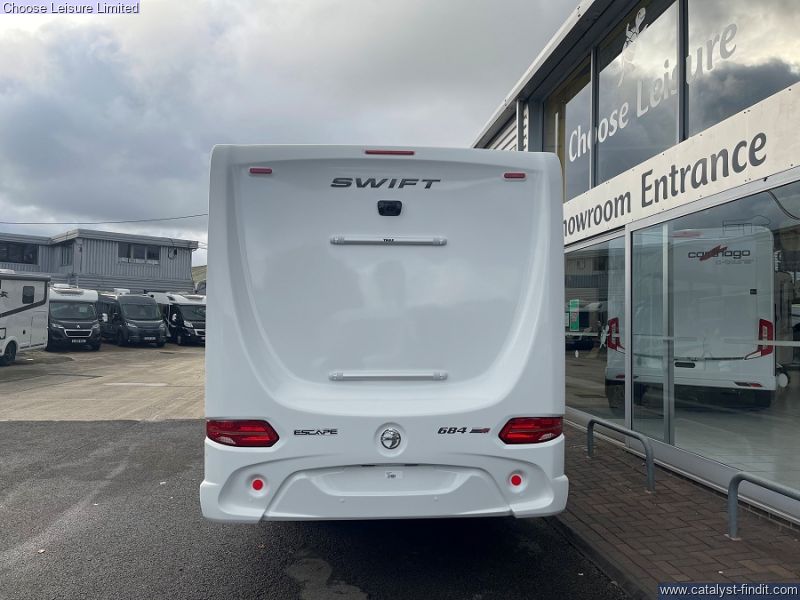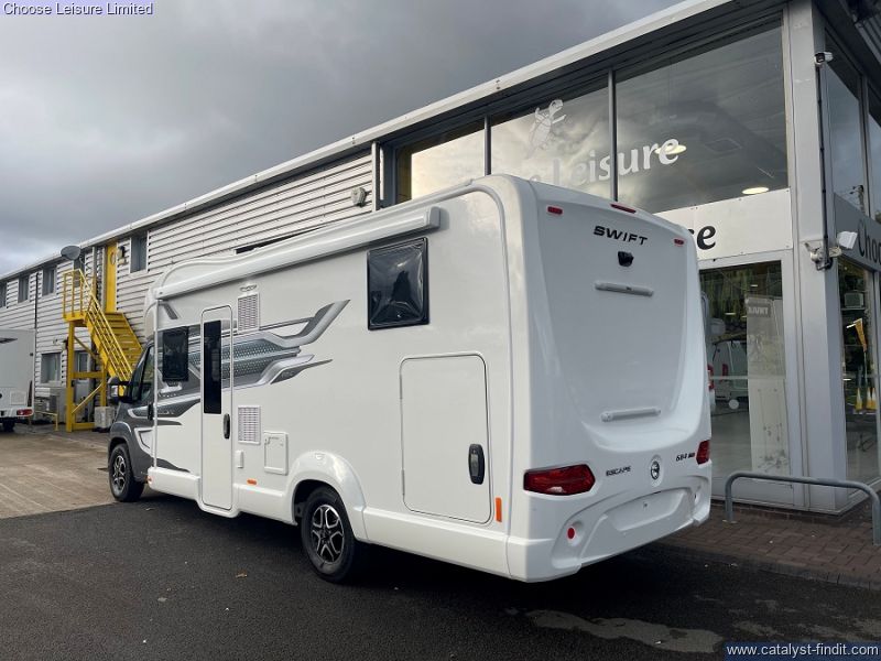 - The ever-popular Swift Escape is back with a striking new look for 2026. Featuring refreshed exterior graphics and a stylish new soft furnishing scheme, Escape blends modern design with all the practical features you’d expect from a premium motorhome. From Aguti travelling seats to streamlined furniture and a boutique-style washroom, every detail is crafted for comfort and convenience.