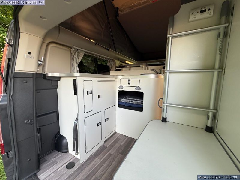 - The 2023 Westfalia Nugget is a stylish and practical 4- berth, 5-seatbelt camper van, designed for adventure and comfort. Featuring a pop-top roof for extra sleeping space, an end kitchen, and a toilet, it offers all the essentials for life on the road. Equipped with an automatic transmission, towbar, and reversing camera, it provides effortless driving and added convenience. Perfect for families or small groups, the Nugget combines compact versatility with premium Westfalia craftsmanship. Finance Available.
