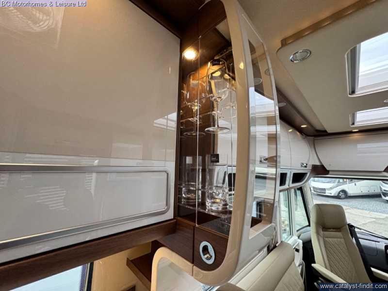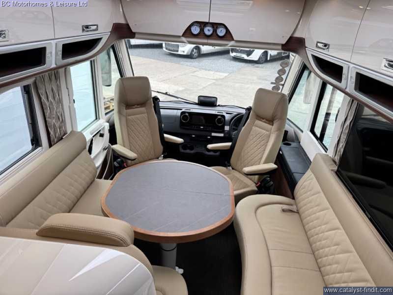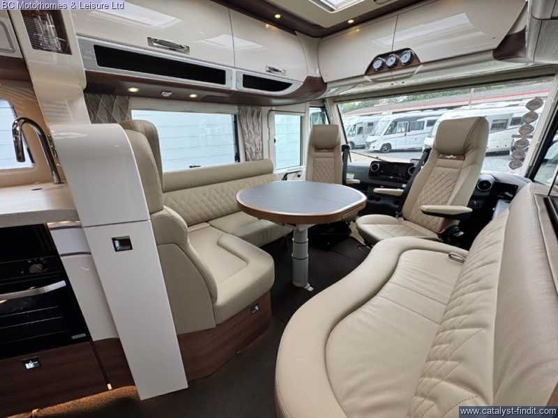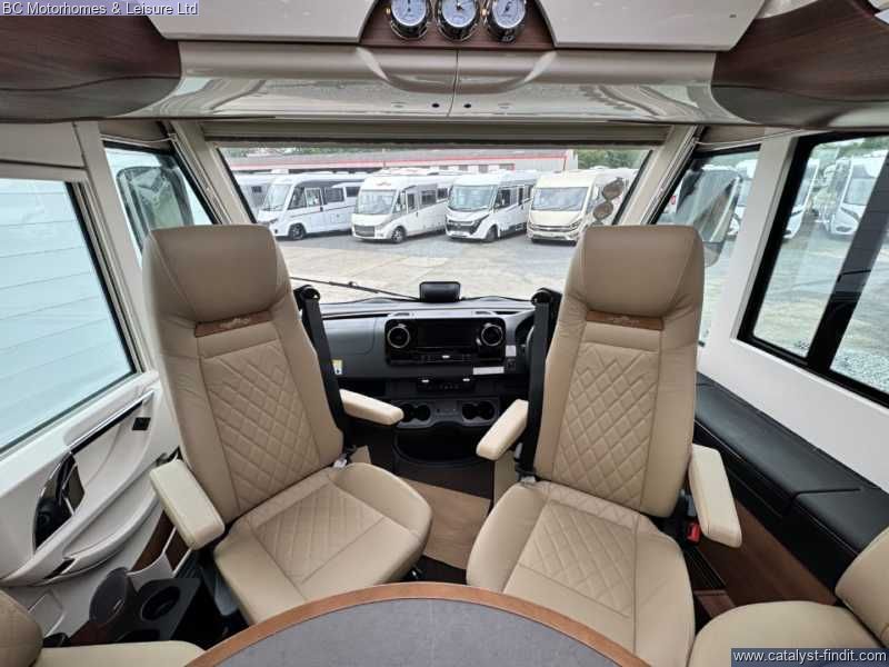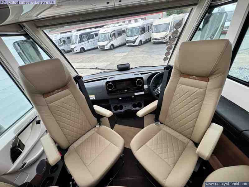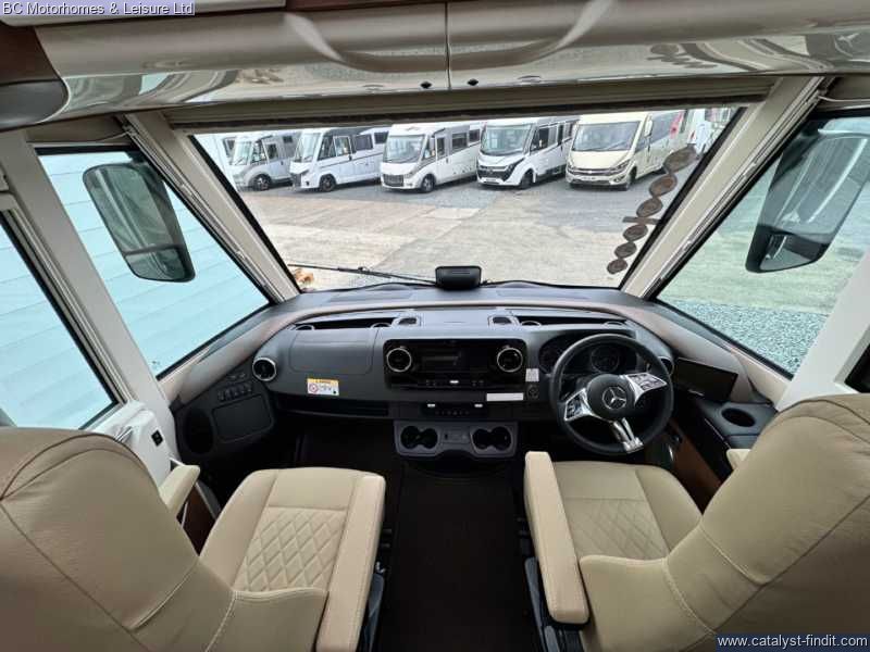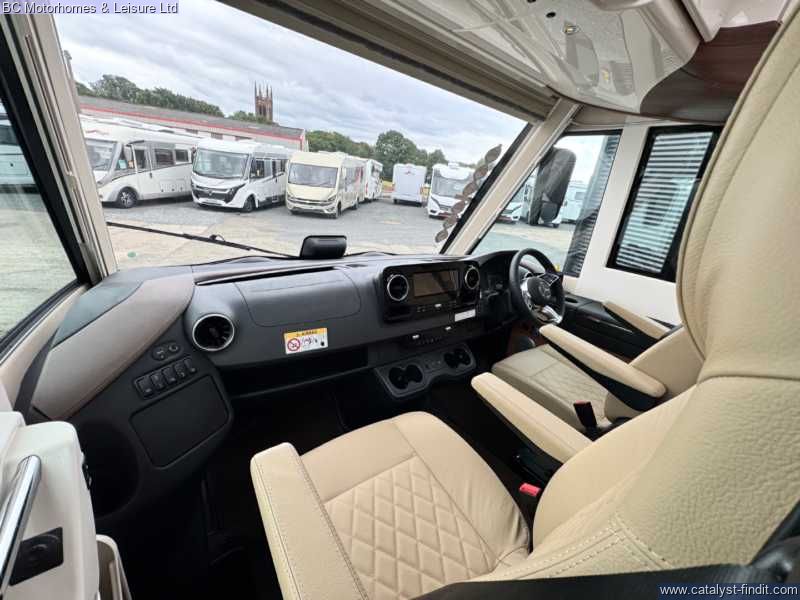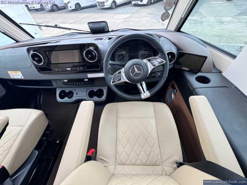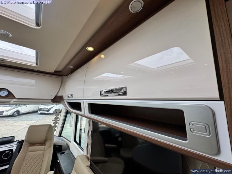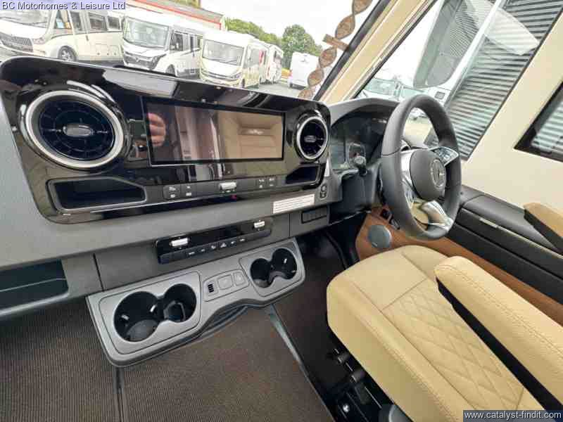 - Super Package consisting of: •Wiring for reversing camera (single lens) •Scooter garage upgrade with needle felt luggage nets •Angle and height adjustable seat surfaces (front and back) driver’s cabin seats •Truma DuoControl CS •Central locking for driver’s cab doors, habitation doors, exterior and scooter garage hatches •Radio preparation with roof antenna with DAB+, loudspeakers (4x), DVB-T2 reception •XL habitation door “Safetyluxe” (width 63 cm) with safety double locking and “coming home” •Rain sensor (Mercedes) •Electric handbrake •Solarvorbereitung •Charge booster 70A •USB socket in the overhead storage cabinet above rear bed (in package included) •MBUX 10.2" multimedia incl. navigation / DAB+ •Traffic Sign Assistant •Bus mirror system in black/white, •Steering wheel with multifunctional buttons option (incl. leather gearshift lever lever with manual transmission) •92 litre fuel tank •Wiring for satellite system •Alde heat exchanger (engine heat utilisation) •Instrument cluster with colour display •Designer bar cabinet with glass holder and glass set above kitchen •3er Schiffsuhrenset •SOG toilet ventilation via roof chimney (only with cassette toilet option) •Crank-operated rear supports to prevent swaying in standing position •Steering wheel with multifunctional buttons option (incl. leather gearshift lever lever with manual transmission) •Thetford C 260 toilet with ceramic insert (standard with superior)