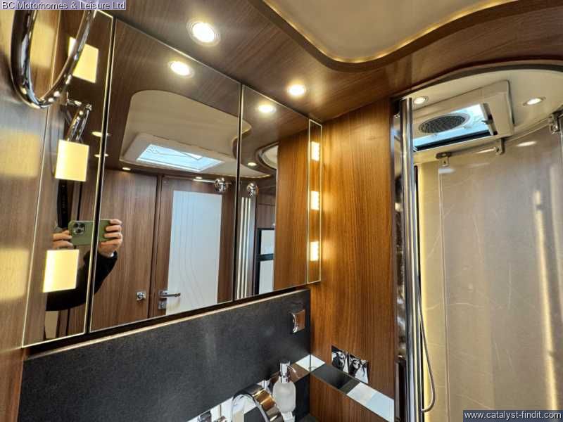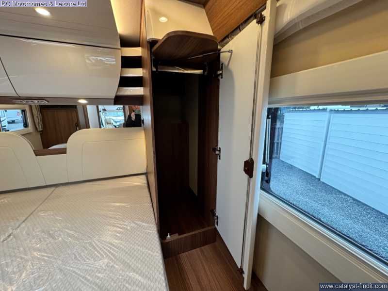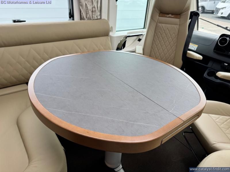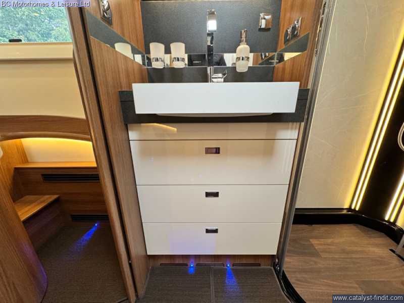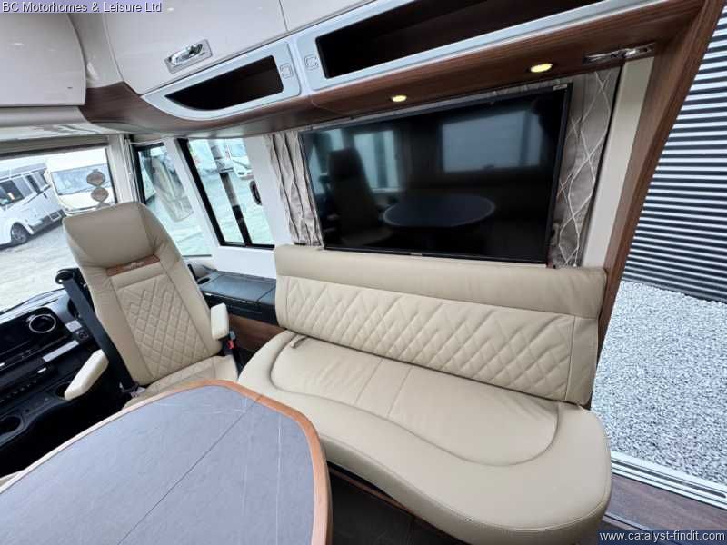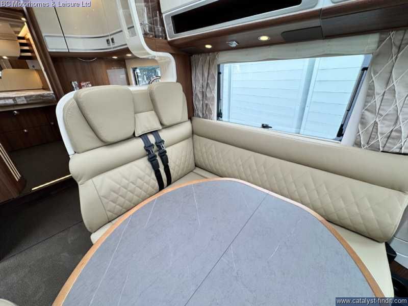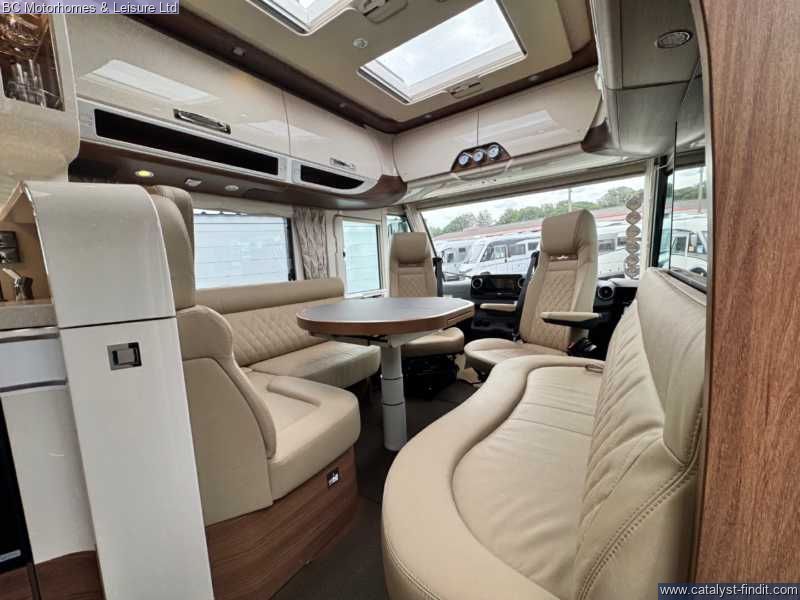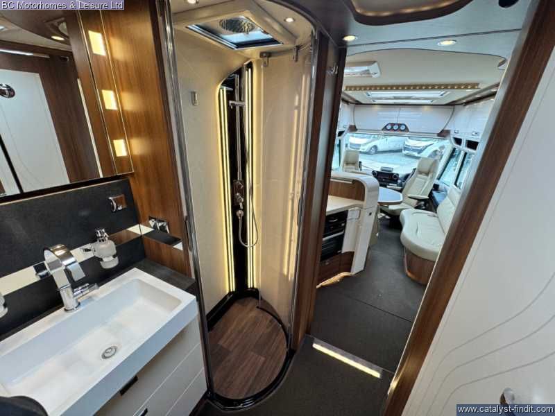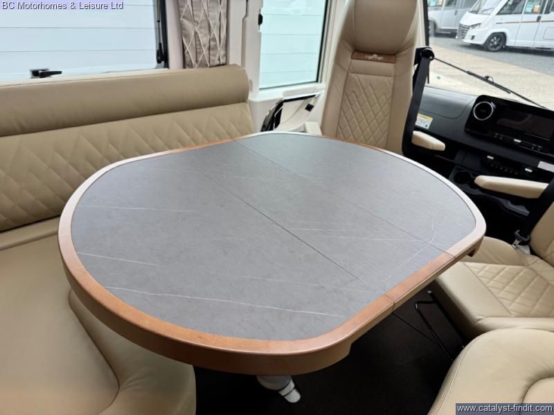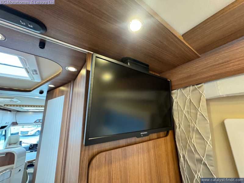 - Super Package consisting of: •Wiring for reversing camera (single lens) •Scooter garage upgrade with needle felt luggage nets •Angle and height adjustable seat surfaces (front and back) driver’s cabin seats •Truma DuoControl CS •Central locking for driver’s cab doors, habitation doors, exterior and scooter garage hatches •Radio preparation with roof antenna with DAB+, loudspeakers (4x), DVB-T2 reception •XL habitation door “Safetyluxe” (width 63 cm) with safety double locking and “coming home” •Rain sensor (Mercedes) •Electric handbrake •Solarvorbereitung •Charge booster 70A •USB socket in the overhead storage cabinet above rear bed (in package included) •MBUX 10.2" multimedia incl. navigation / DAB+ •Traffic Sign Assistant •Bus mirror system in black/white, •Steering wheel with multifunctional buttons option (incl. leather gearshift lever lever with manual transmission) •92 litre fuel tank •Wiring for satellite system •Alde heat exchanger (engine heat utilisation) •Instrument cluster with colour display •Designer bar cabinet with glass holder and glass set above kitchen •3er Schiffsuhrenset •SOG toilet ventilation via roof chimney (only with cassette toilet option) •Crank-operated rear supports to prevent swaying in standing position •Steering wheel with multifunctional buttons option (incl. leather gearshift lever lever with manual transmission) •Thetford C 260 toilet with ceramic insert (standard with superior)