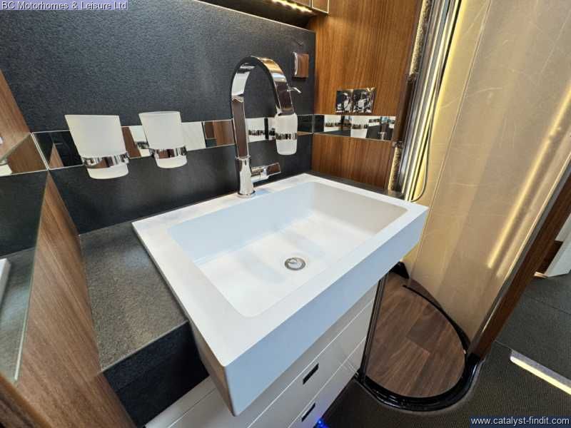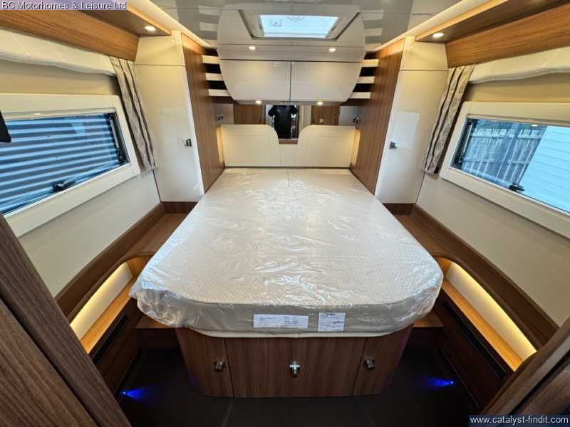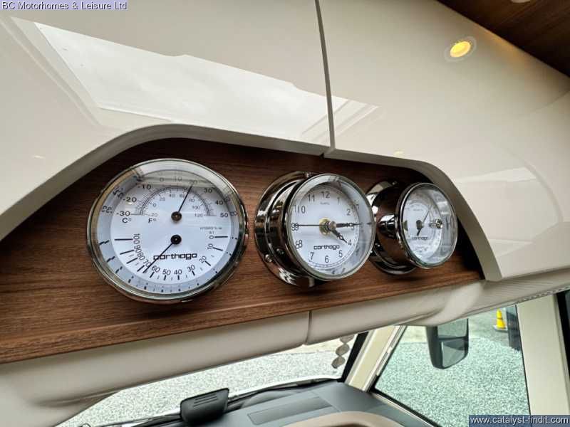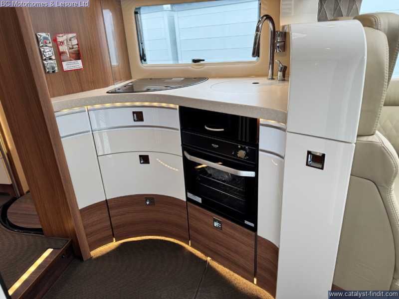 - Chassis Plus package for Mercedes consisting of: •16-inch alloy wheels Mercedes (black) with all-weather tyres (twin axle) •170 HP engine version / 125 kW, Euro VI •THERMOTRONIC fully automatic air conditioning system •9G-Tronic automatic gearbox incl. holding function SURCHARGE for reversing camera with double lens instead of single lens Luxury habitation door package consisting of: •Electric door opening support from interior and exterior •Additional LED lighting in door window for “coming & leaving home“ function •Extra-quiet and electrical self-closing mechanism •Keyless access system via RFID-Chip SURCHARGE Oyster Vision 85 satellite system with skew / twin LNB for second TV Increased load from 5,000 kg to 5,500 kg (double axle)