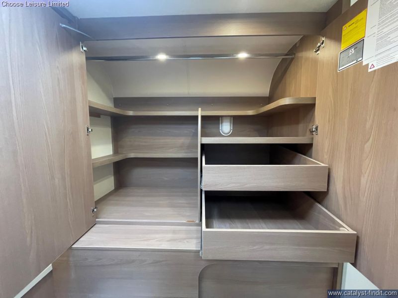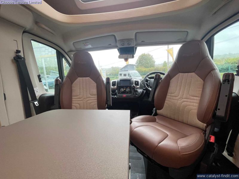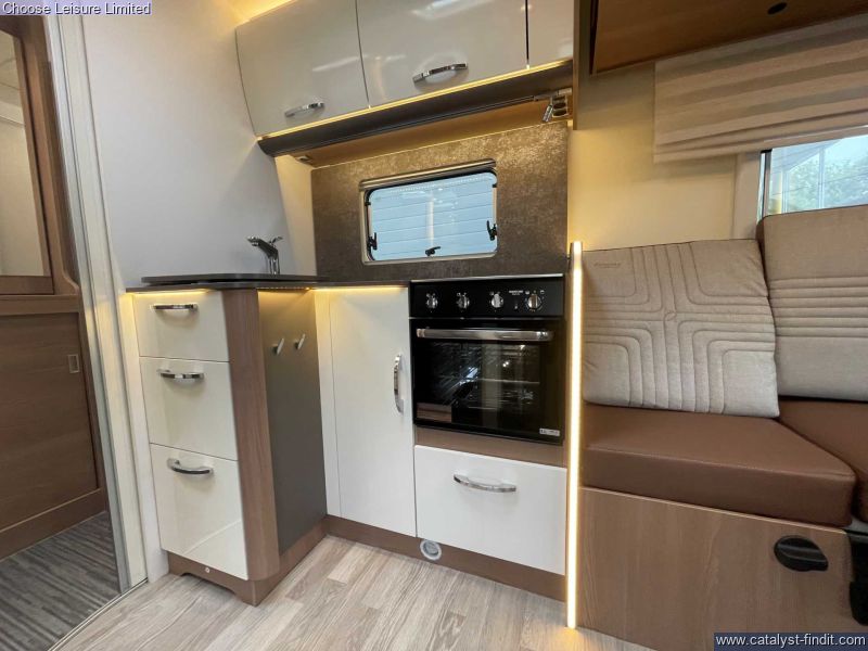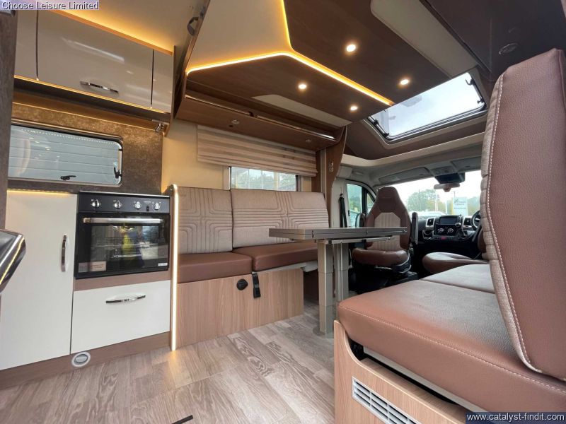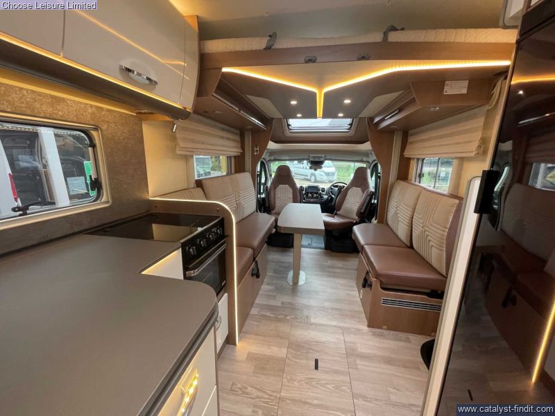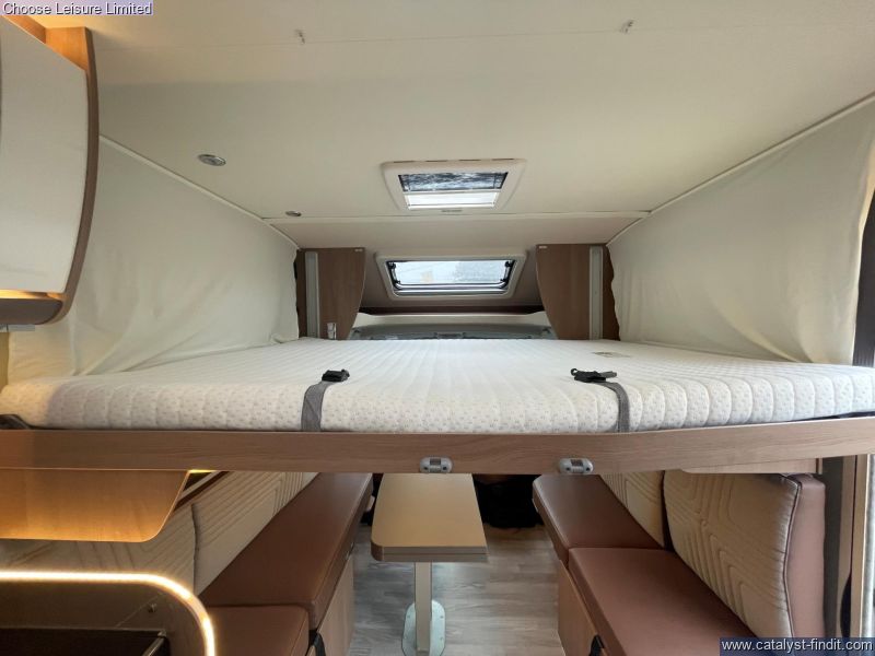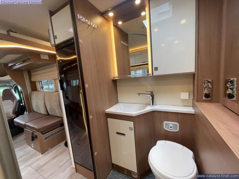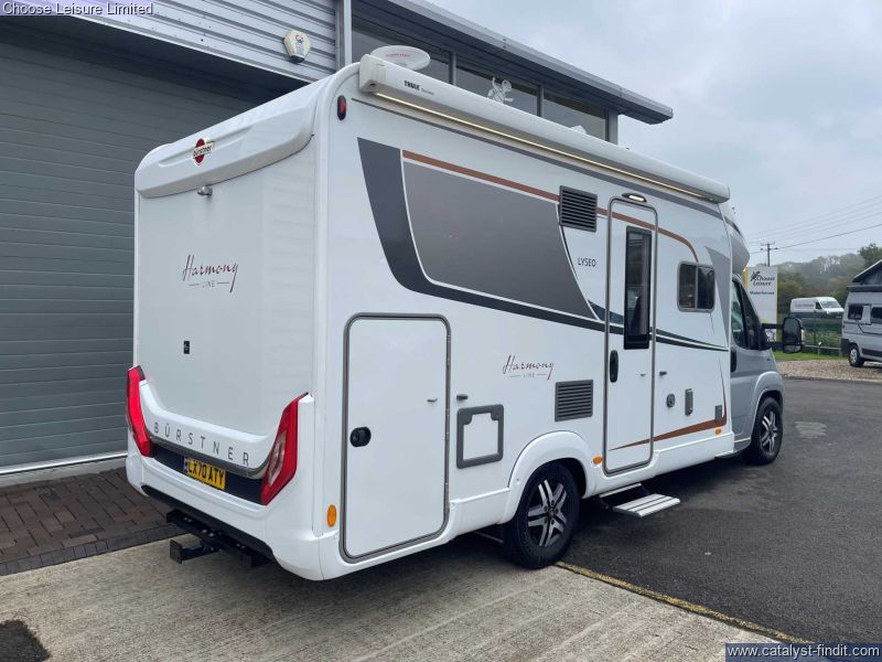 - This Burstner presents a well-planned spacious design - both clever and versatile. Swivelling cab seats add additional leisure seating at the large table and the L shaped sofa has two forward facing travelling seatbelts in addition to another side-facing sofa. Above this comfortable, flexible area there is a transverse drop down electric double bed, you will hardly notice this is when in its daytime position. The modern, central kitchen is well equipped with an oven, hob with 3 gas rings, large fridge and a delightful pull out cupboard. The washroom has a fantastic design encompassing the full width of the rear of the vehicle with a toilet and sink on one side with a separate shower cubicle opposite. The layout is completed by a full width garage with two access doors, one allows you to access everything internally! This motorhome has everything you need to travel in complete style and everything you need along with you. Technical: