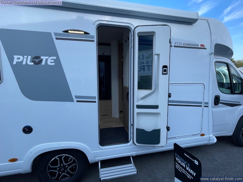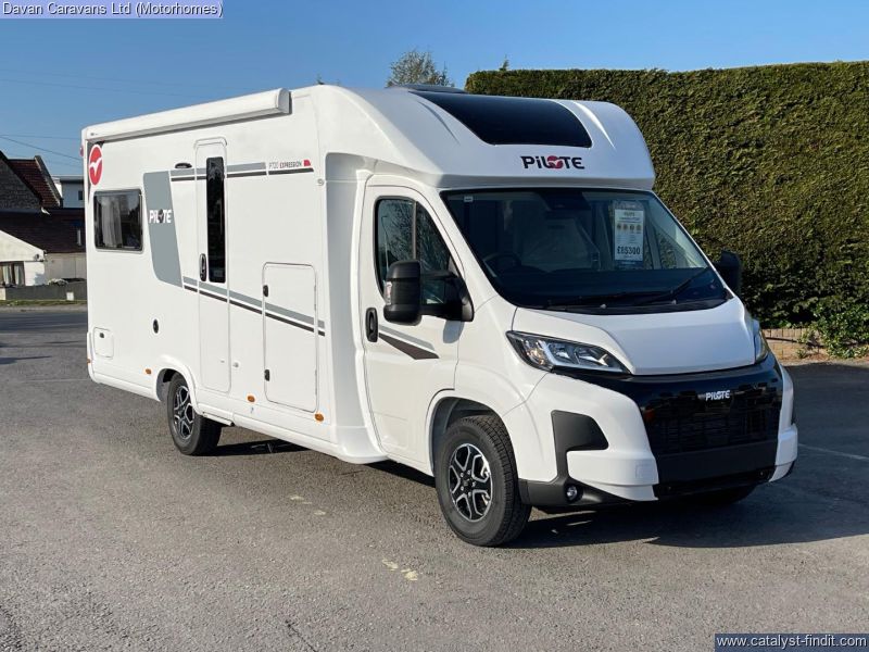 - Embark on Unforgettable Journeys with the 2025 Pilote Expression P720U Motorhome. Introducing the brand new 2025 Pilote Expression P720U, a luxurious and innovative motorhome designed for the ultimate travel experience. Built on the new 2025 facelift Fiat Ducato chassis and boasting a smooth, new 8-speed 140bhp Automatic gearbox, this motorhome offers a seamless blend of performance and comfort. Spacious and Versatile Living. The P720U is designed to sleep and travel four, making it perfect for families or couples seeking adventure. The interior features a large, inviting U-shaped lounge, ideal for relaxing and entertaining. When night falls, a convenient electric drop-down double bed transforms the living area into a comfortable sleeping space. Unrivaled Storage Solutions. Never compromise on what you bring again! The P720U offers an exceptional amount of storage, including a new, large side storage locker and a spacious double wardrobe, ensuring ample room for all your travel essentials. Clever Bathroom Design. Experience the convenience of completely separate shower and toilet cubicles that cleverly transform into an en-suite style bathroom, providing privacy and comfort on the road. Factory-Fitted Optional Extras for Enhanced Comfort and Convenience. This P720U has been ordered directly from the factory with a host of optional extras to elevate your travel experience: PACK GRAND COMFORT (£1,760): Lighting, rails, and 230V power outlet in the garage Frost-proof waste water tank Hot/cold shower head in the storage area Awning Duckboard Skirt drawer Automatic Truma® Crash Sensor regulator/switch START PACK (£1,060): 1 AGM battery 1 solar panel Pioneer car radio with 7” screen DAB Apple CarPlay/Android Auto Reversing camera Living area and cab speakers Additional Options: Black Grille (£300) Heating (£710) Wardrobe Lighting (£80) Carpets (£490) Oven (£580) Automatic 8-Speed Gearbox (£2,640) Bathroom Door Mirror (£220) EBS Pack (£880) RIMS PACK (£880): 16” alloy rims, leather steering wheel, and grey aluminum air vents. EPB PACK: Tyre pressure sensor, electric parking brake and automatic headlights The 2025 Pilote Expression P720U is more than just a motorhome; it's a gateway to unforgettable adventures. Contact us today to learn more and begin planning your next journey!Come and see this revolutionary vehcile at Davan in Weston Super Mare or contact our motorhome sales team on 01934 524242 for more details.
