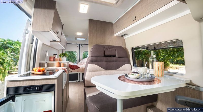 - Motorization 2.2L 140 HP / 103 kW / Auto. • Manual cab air conditioning • Driver and passenger airbag • Fix and go • Swivel seats in the cab, with double armrests and adjustable height • Cab seat covers with matching cushions • Electric de-icing rearview mirrors • Cruise control and speed limiter • ESP • Traction + • Hill Descent control • Exclusive black grille Eco pack: Stop&Start, smart alternator, electronically- controlled fuel pump • • Panoramic skylight (or two skylights) • Double-locking windows with combined blinds/screens • USB ports • 9-speed automatic gearbox • Heavy 16'' two-tone black alloy wheels • Fog lamps • TV-ready • Bathroom with window • Rear opening windows • Dining area table extension • Exterior table stand • Electric step • Maxi Cab • Wardrobe • Bathroom with folding partition • Reinforced insulation "VPS" • Solar panel ready (MPPT ready) Heating using vehicle fuel digitally programmed and used while on the road • • Rear camera pre-wiring Pack Connect : Bluetooth radio DAB with touchscreen and steering wheel controls and reversing camera • Pack Van accessories: Exterior awning, solar panel, entrance door exterior lighting, door mosquito net, cab interior awning, dining nook extra bed