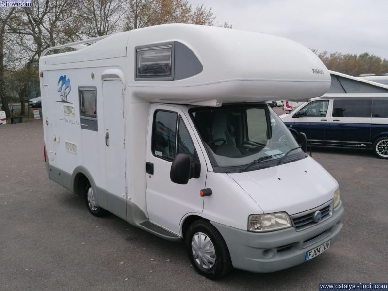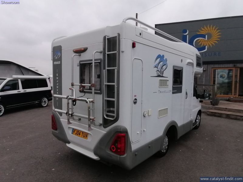 - The Knaus Traverller is a 4 berth motorhome with a rear bathroom and over cab bed, double dinette and side kitchen.