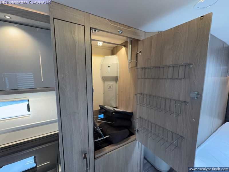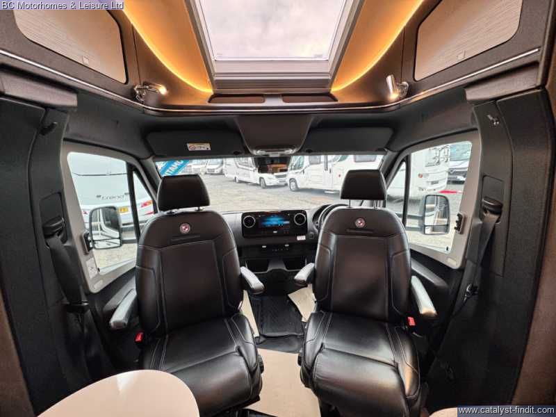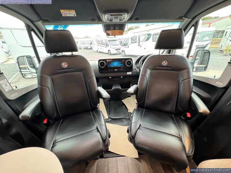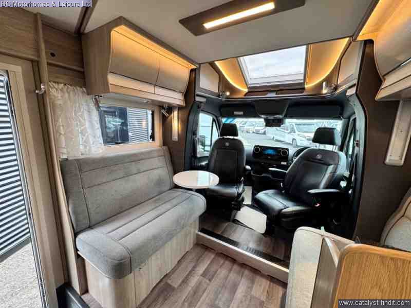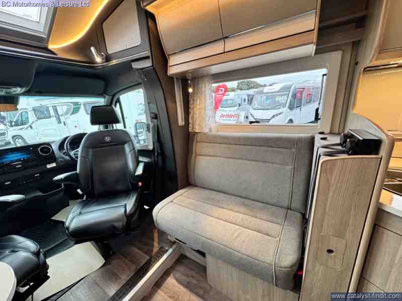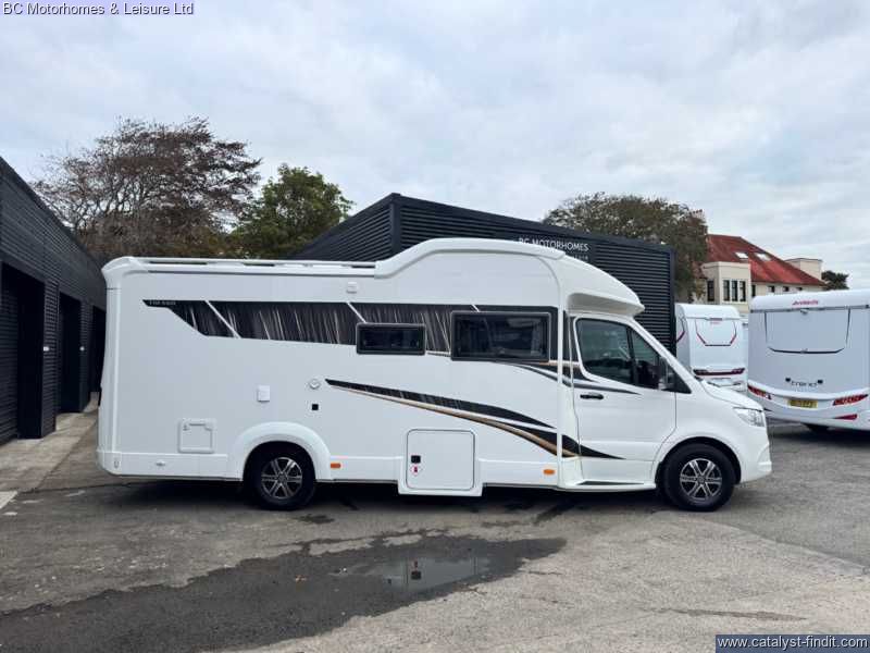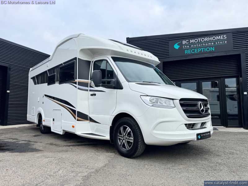 - 2023 Coachman Travelmaster 560 – Luxury Touring at Its FinestExperience true comfort and freedom on the open road with the 2023 Coachman Travelmaster 560 – a premium motorhome designed for effortless touring and exceptional living. Crafted by Coachman, a brand renowned for its build quality and attention to detail, the Travelmaster 560 combines elegant design with advanced engineering to deliver a truly first-class travel experience.Key FeaturesEngine Performance: Built on a reliable Mercedes-Benz chassis, the Travelmaster 560 offers smooth, responsive performance and impressive fuel efficiency – perfect for both short getaways and extended adventures.Luxury Interior: Step inside and you’re greeted by a bright, contemporary living space finished in high-end materials. Plush upholstery, LED lighting, and soft-touch cabinetry create a warm, inviting atmosphere.Sleeping Arrangements: Features a spacious fixe island bed with a premium mattress, ensuring restful nights wherever you park.Kitchen: Fully equipped with a three- burner gas hob, oven/grill, large fridge/freezer, and ample worktop space – ideal for preparing meals on the go. Bathroom: Includes a separate shower cubicle, modern vanity unit, and cassette toilet – all designed for comfort and convenience.Technology & Safety: Comes with air conditioning, cruise control, reversing camera, touchscreen infotainment, and advanced driver-assist features for a confident drive.Storage & Practicality: Cleverly designed storage throughout, with external lockers and under-bed compartments ensuring all your essentials travel neatly with you.Why Choose the Travelmaster 560?Whether you’re exploring the coast, touring Europe, or escaping for a weekend, the Coachman Travelmaster 560 offers the perfect balance of luxury, practicality, and performance. With its refined finish, cutting-edge features, and superior craftsmanship, this motorhome truly feels like a five-star hotel on wheels.