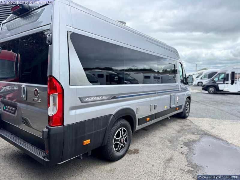 - The Warwick XL builds on the concept of the ever-popular Warwick Duo by providing the ergonomically comfortable rear lounge, which converts quickly into full-length single beds or a capacious double bed. In addition to this, it boasts a spacious bathroom featuring a fully separate shower and a large fully featured kitchen on the nearside to provide luxuriously open plan accommodation ideal for both short breaks and long term touring alike.