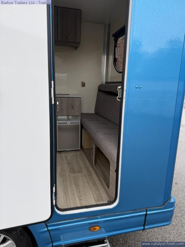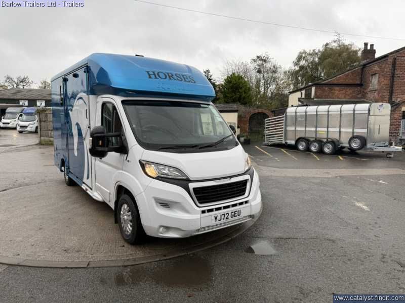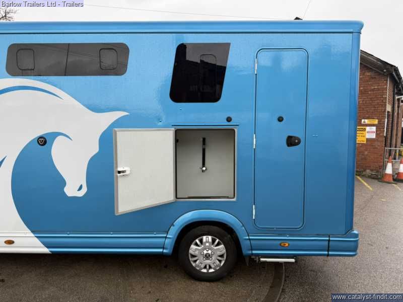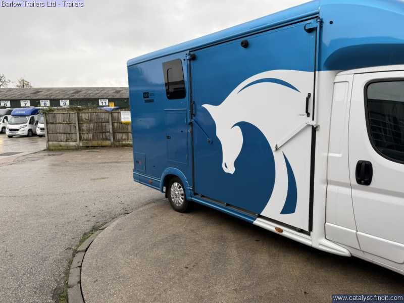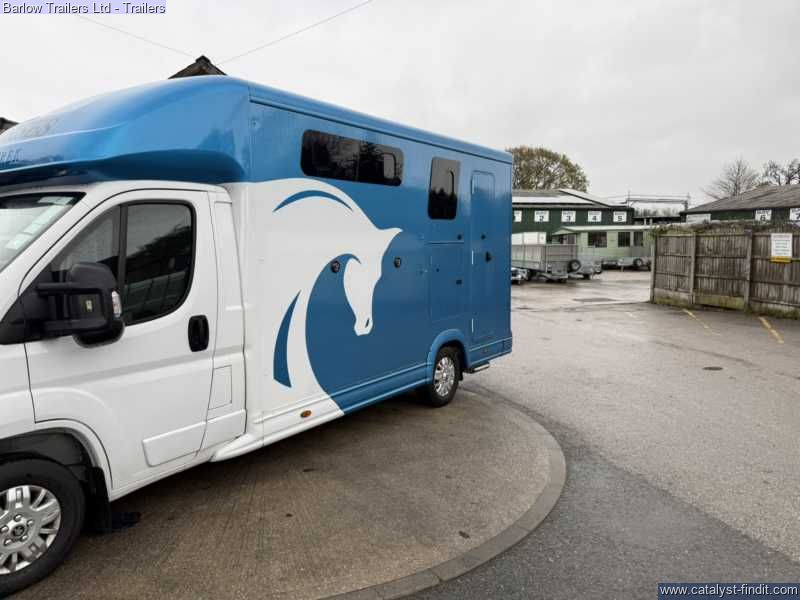 Barlow Trailers are pleased to offer !Equinox Excel 3500 kg! Get ready for the new season. compact, easy to drive horsebox, with a gross maximum weight of 3,500kg, meaning it can be driven by anyone with a standard car license. The Equinox is powered by a powerful HDI diesel engine which complies with the latest emission standards, giving effortless performance and outstanding economy. The Equinox has the added benefit of a tack and changing area that is totally separate from the horses.There is also additional storage over the cab. ColourPeugeot White/ Moraine Blue Excel Pack. Enhances your horsebox, including many of our most popular extras, as well as some unique features: Mud Flaps (Front Wheels), Two Tone Paint including Horse Graphics and Colour Match Bumpers, Horse Area Camera, Reversing Camera, Extra Height Partition, Padding for Partition, Seat with Storage, Vanity Mirror Additional Spec- Cruise control DAB radio Skylight Roof Vent Flettner 2000 Roof Ventilator Flush Glazed Windows Grooms Locker Mud Flaps (Rear Wheels) Tack Locker Full Height Bulkhead Composite High ImpaBarlow Trailers are pleased to offer !Equinox Excel 3500 kg! Get ready for the new season. compact, easy to drive horsebox, with a gross maximum weight of 3,500kg, meaning it can be driven by anyone with a standard car license. The Sonic is powered by a powerful HDI diesel engine which complies with the latest emission standards, giving effortless performance and outstanding economy. The Sonic has the added benefit of a tack and changing area that is totally separate from the horses. This incorporates two saddle racks, two bridle racks and two coat hooks. There is also additional storage over the cab. ColourPeugeot White/ Moraine Blue Excel Pack. Enhances your horsebox, including many of our most popular extras, as well as some unique features: Mud Flaps (Front Wheels), Two Tone Paint including Horse Graphics and Colour Match Bumpers, Horse Area Camera, Reversing Camera, Extra Height Partition, Padding for Partition, Seat with Storage, Vanity Mirror Additional Spec- Cruise control DAB radio Skylight Roof Vent Flettner 2000 Roof Ventilator Flush Glazed Windows Grooms Locker Mud Flaps (Rear Wheels) Tack Locker Full Height Bulkhead Composite High Impact Kick Boards Composite Panels Full Width Collapsible Breast Bar Grooms Doors Between Horse Area and Living Area Head Divider LED Interior Light Light and Spacious Interior Safety Loading Doors Strong Aluminum Plank Floor with Dunlop Rubber Strong, Adjustable Partitions with PVC Skirt Two Horse and Two Hay net Tie Rings Padding for Partition Extra Height Partition Hard Wired Camera with 7” Monitor and Reversing Camera Storage Over Pod with Door Full Height Ramp Payload 1100kg £63999 inc Vat.ct Kick Boards Composite Panels Full Width Collapsible Breast Bar Grooms Doors Between Horse Area and Living Area Head Divider LED Interior Light Light and Spacious Interior Safety Loading Doors Strong Aluminum Plank Floor with Dunlop Rubber Strong, Adjustable Partitions with PVC Skirt Two Horse and Two Hay net Tie Rings Padding for Partition Extra Height Partition Hard Wired Camera with 7” Monitor and Reversing Camera Storage Over Pod with Door Full Height Ramp Payload 1100kg £63999 inc Vat.